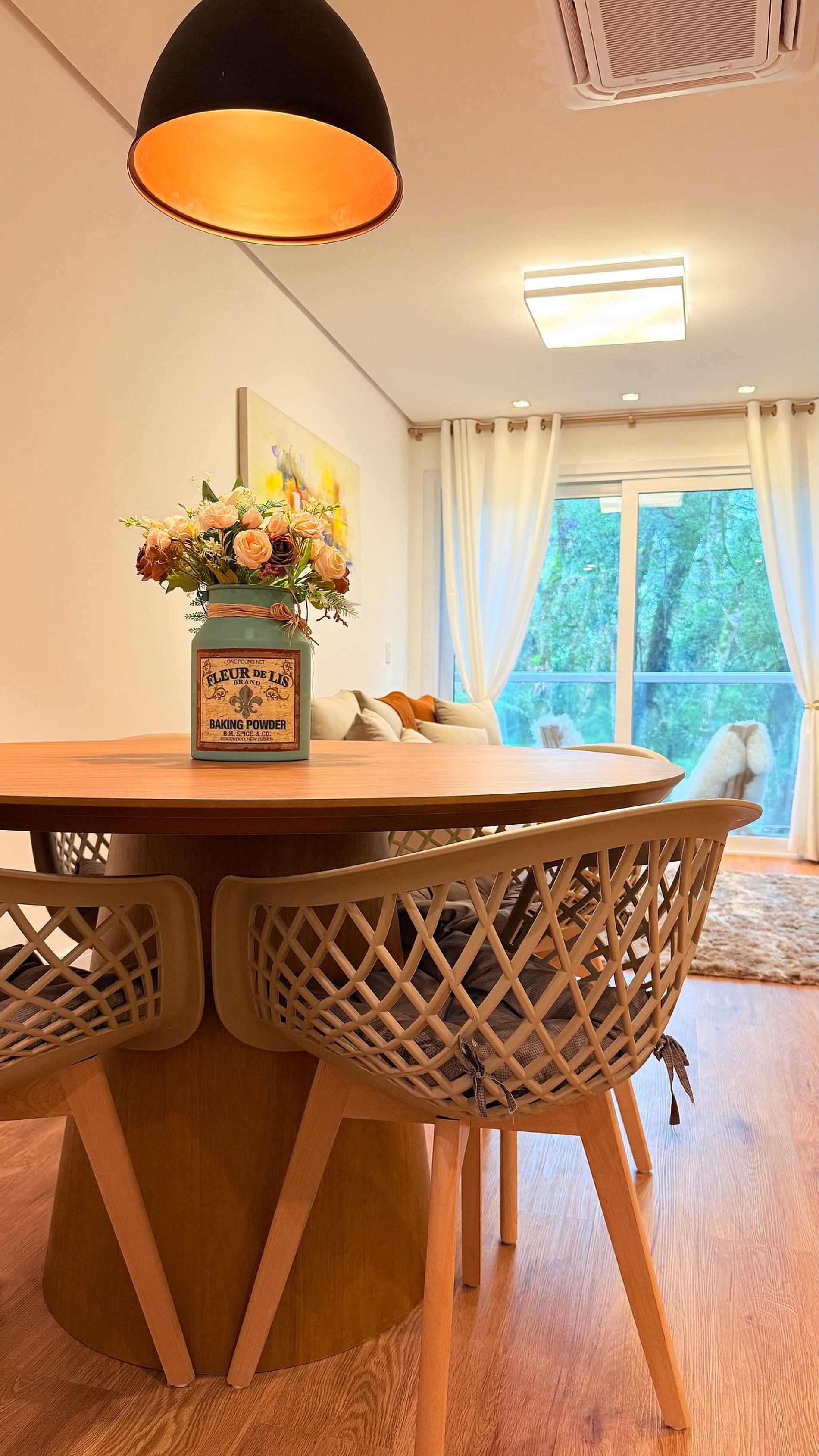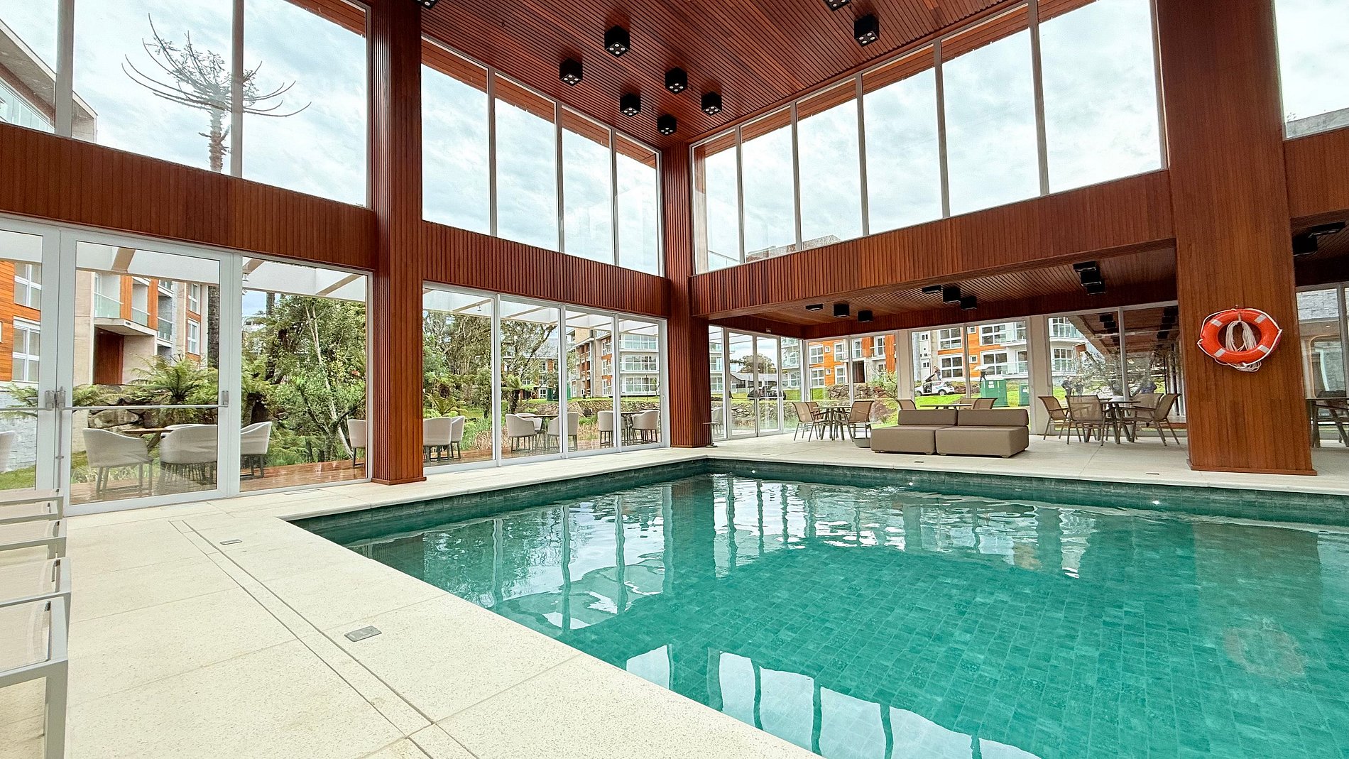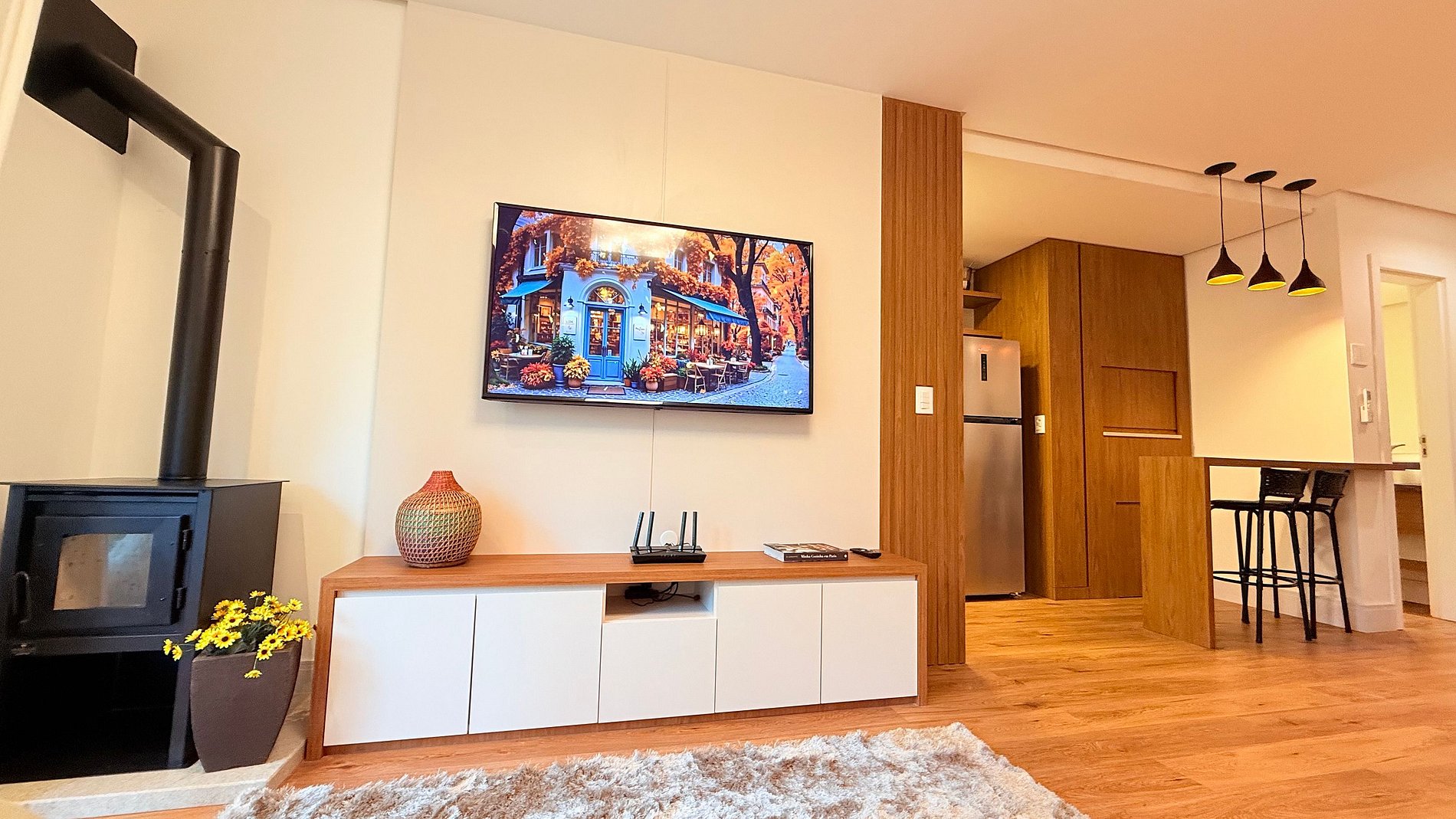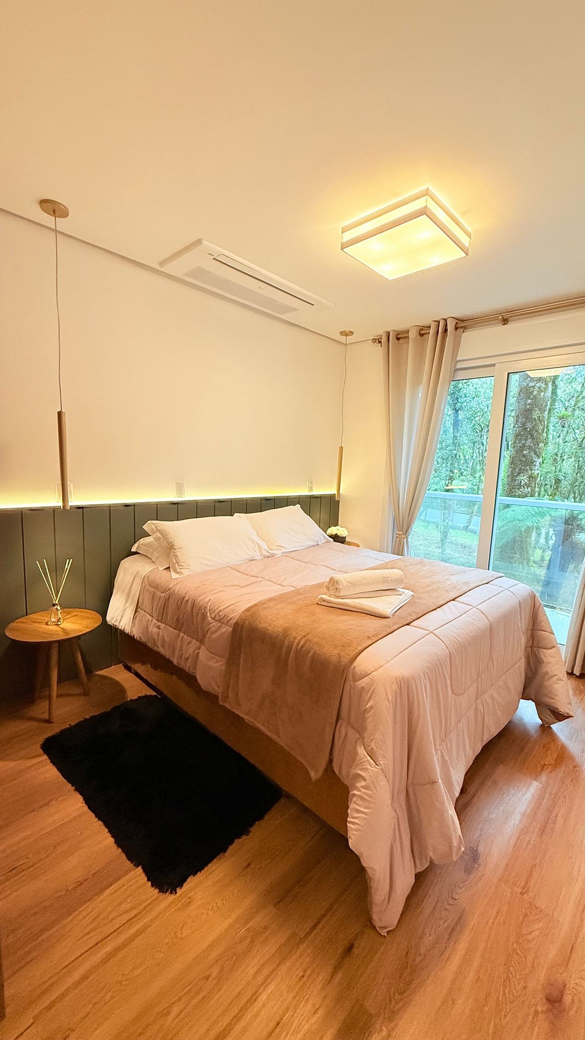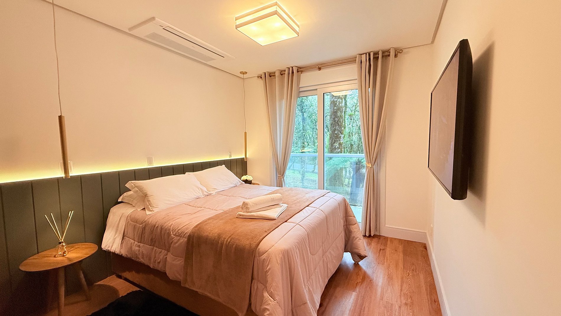 Esse apê é um refúgio perfeito em meio à natureza de Gramado. A ampla varanda com vista para o verde convida a momentos de paz e contemplação. A lareira e o sofá-cama tornam a sala ainda mais acolhedora. A suíte é confortável e climatizada, com cama queen e ar-condicionado. Tudo foi pensado para unir conforto, praticidade e beleza — dentro de um condomínio clube com lazer completo, ideal para todas as idades.