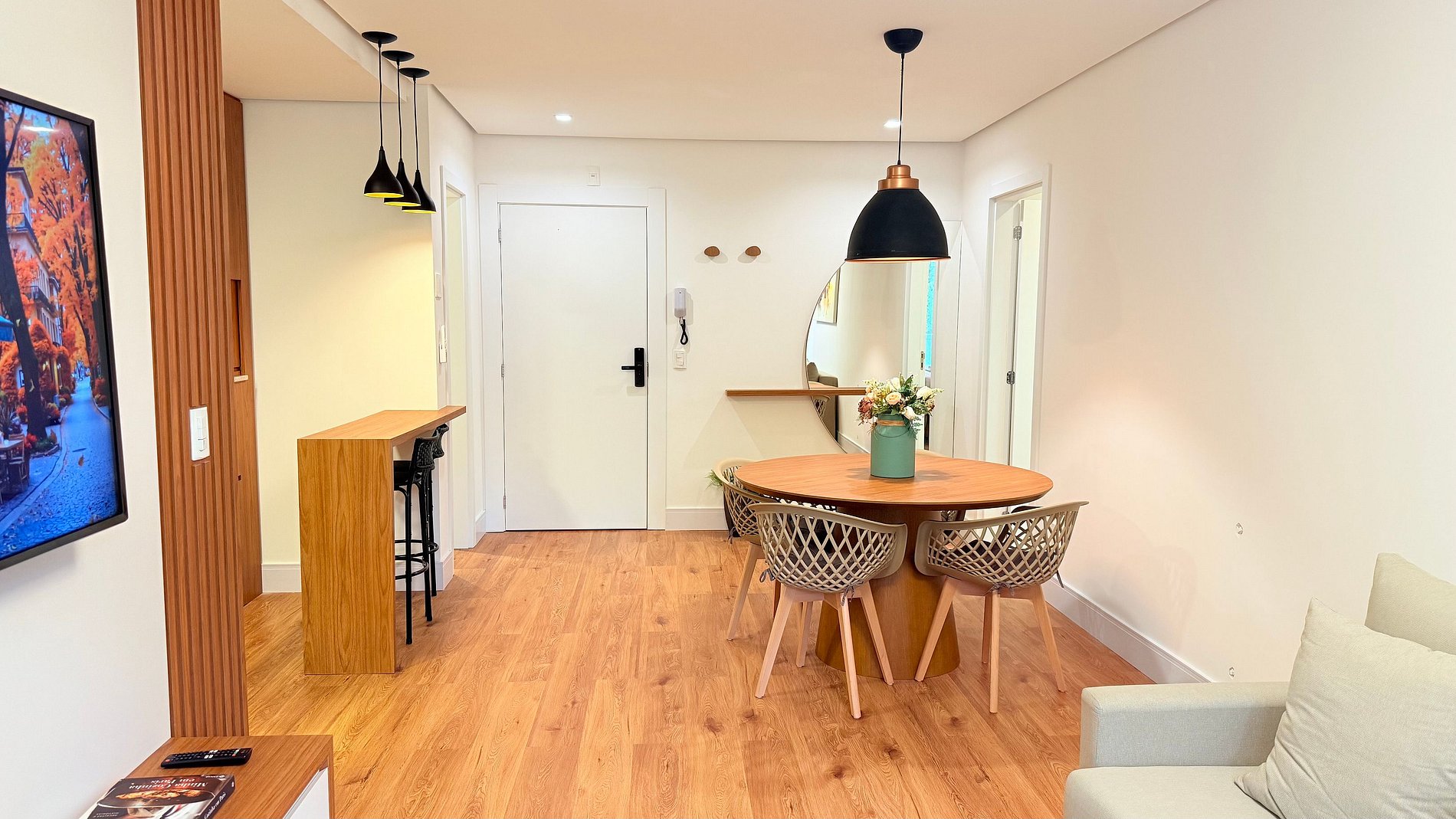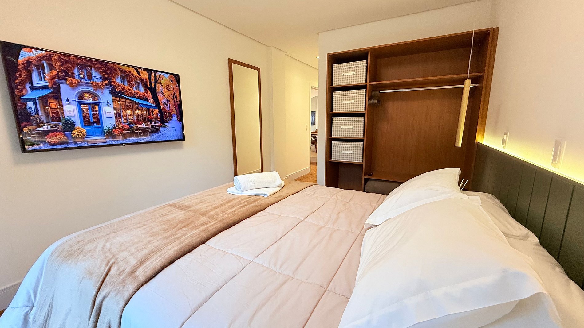 • Acomoda até 4 pessoas: 1 cama queen na suíte + 1 sofá-cama na sala