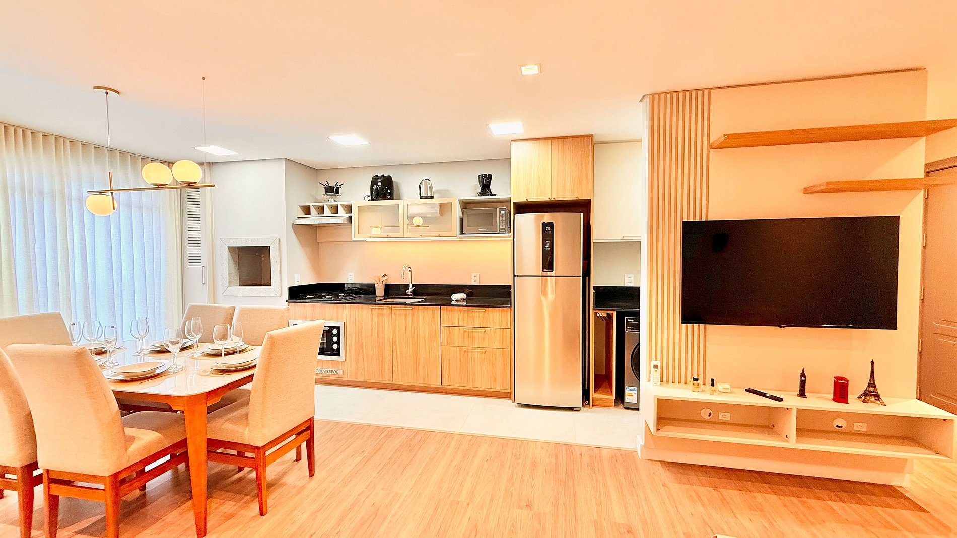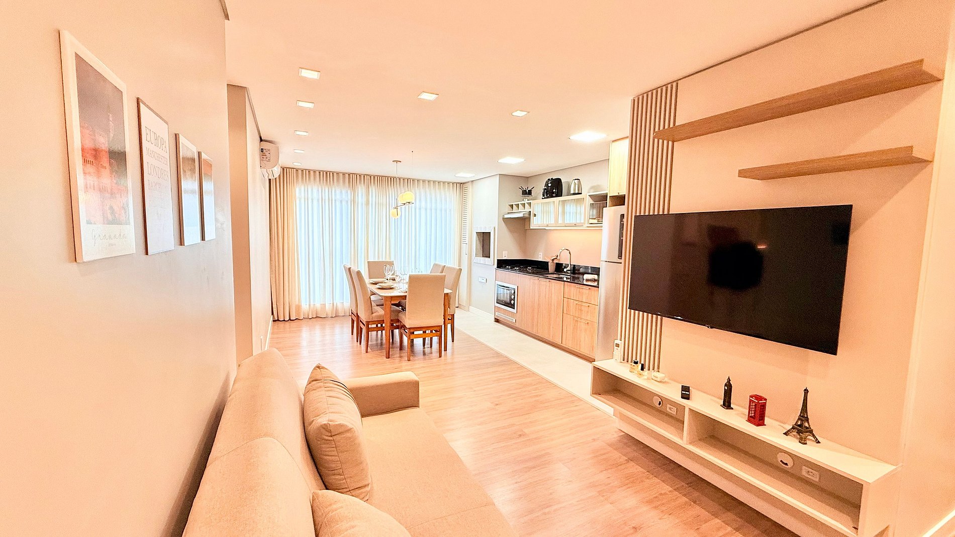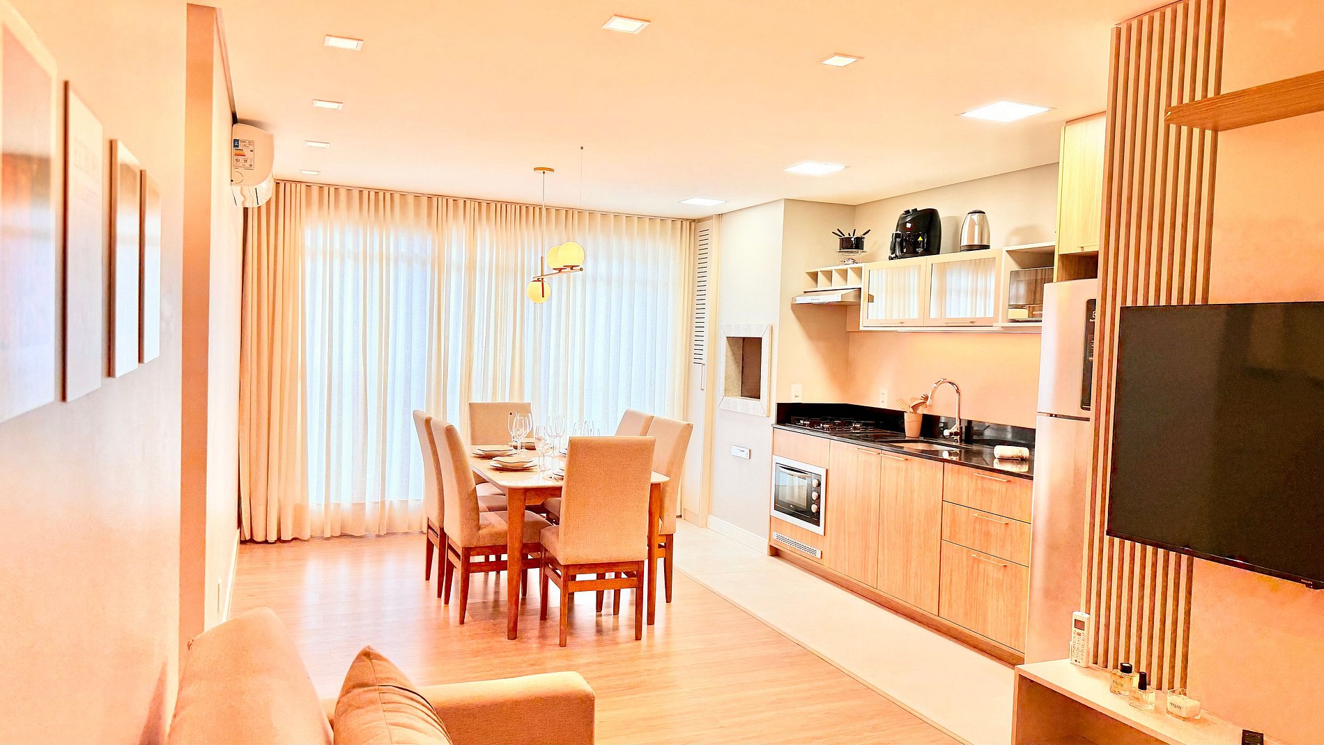 Aproveite a essência de Gramado em um apartamento novo, aconchegante e bem planejado. A suíte com cama queen garante conforto, enquanto o segundo quarto oferece duas camas de solteiro ideais para famílias. A sala conta com sofá-cama e ar-condicionado em todos os ambientes. A churrasqueira integrada e a cozinha equipada tornam sua estadia prática e agradável. Em localização privilegiada, a apenas 1 km da Rua Coberta, o espaço une comodidade e tranquilidade.