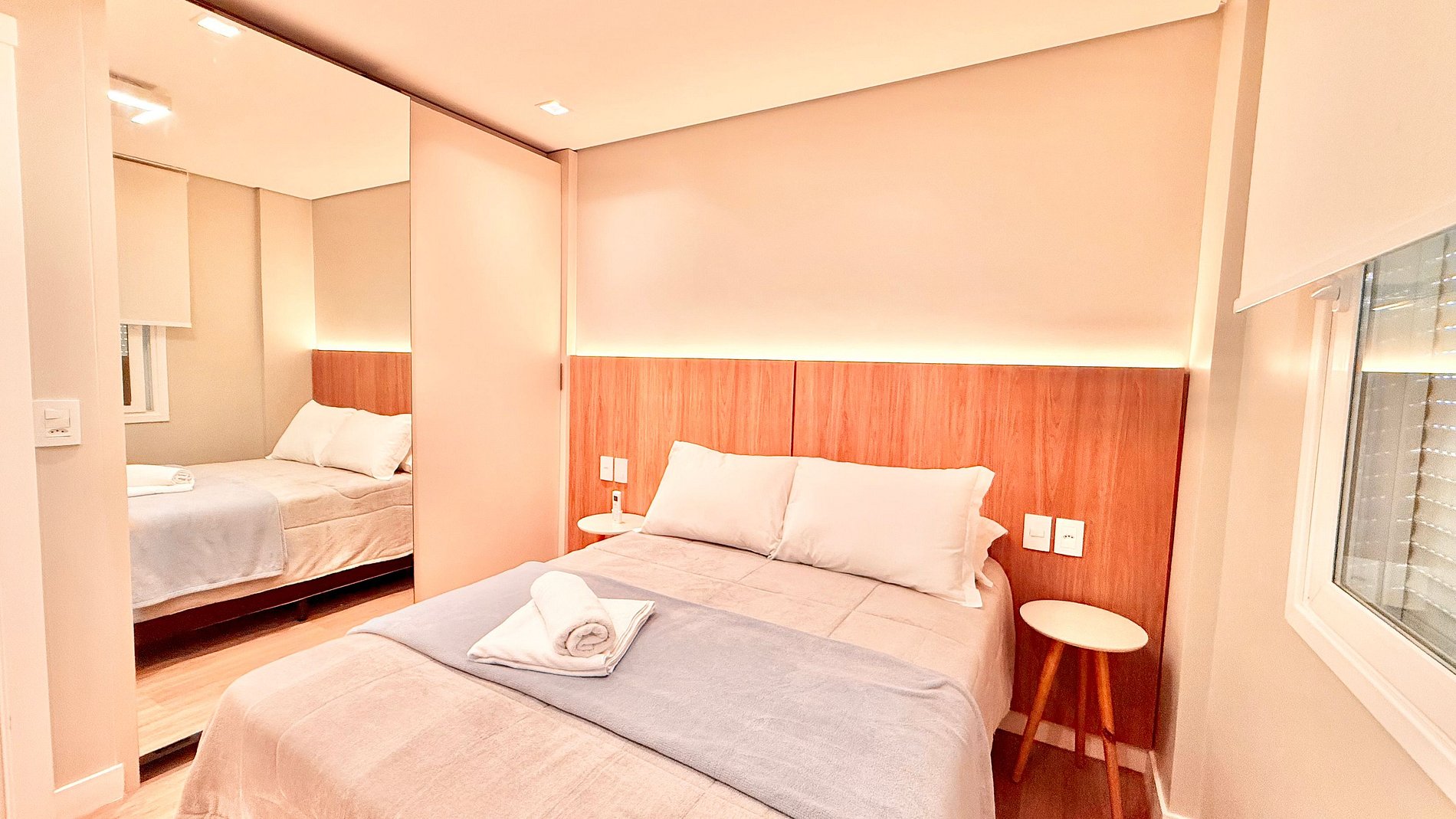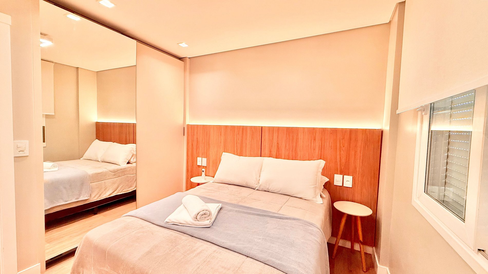 Apartamento novo, aconchegante e bem equipado em Gramado. Possui dois quartos, sendo uma suíte com cama queen e um dormitório com duas camas de solteiro. A sala conta com sofá-cama de solteiro, ar-condicionado em todos os ambientes e churrasqueira. Perfeito para famílias ou casais que buscam conforto e praticidade. Localizado a apenas 1 km da Rua Coberta, em uma área tranquila e de fácil acesso aos principais pontos da cidade.