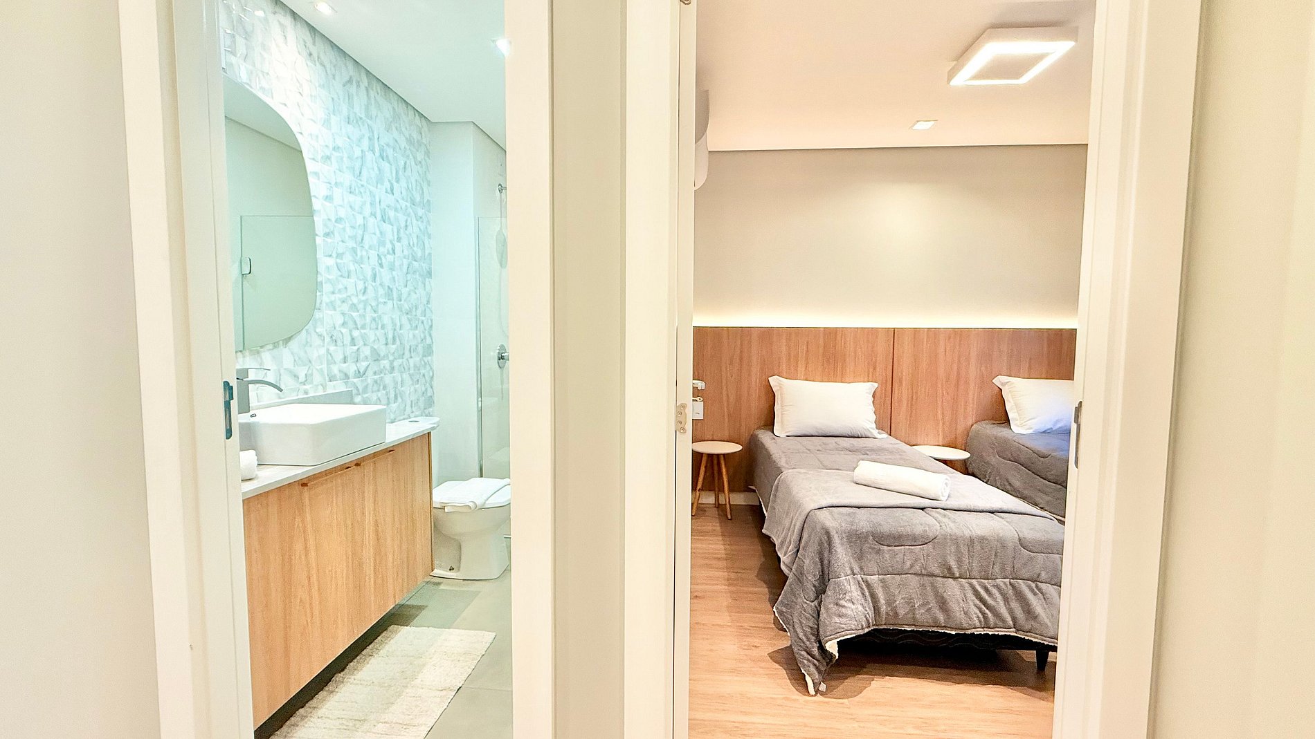 Os hóspedes têm acesso a todo o apartamento, incluindo a suíte, o segundo dormitório, a sala de estar com sofá-cama, cozinha completa e área com churrasqueira. O condomínio oferece 1 vaga de garagem privativa e playground infantil, ideal para famílias com crianças. Todas as áreas comuns permitidas aos visitantes podem ser utilizadas conforme as regras do condomínio.
