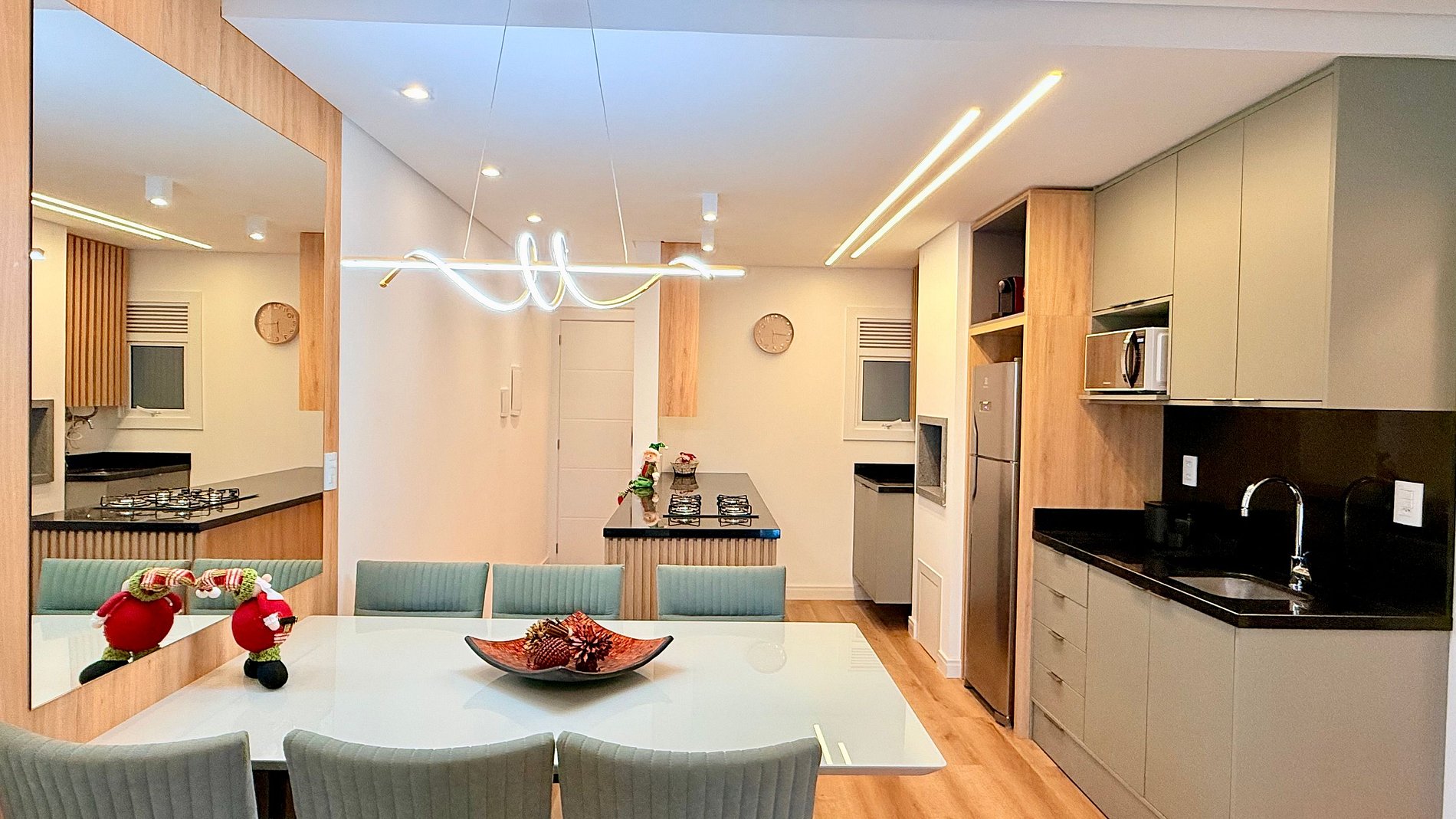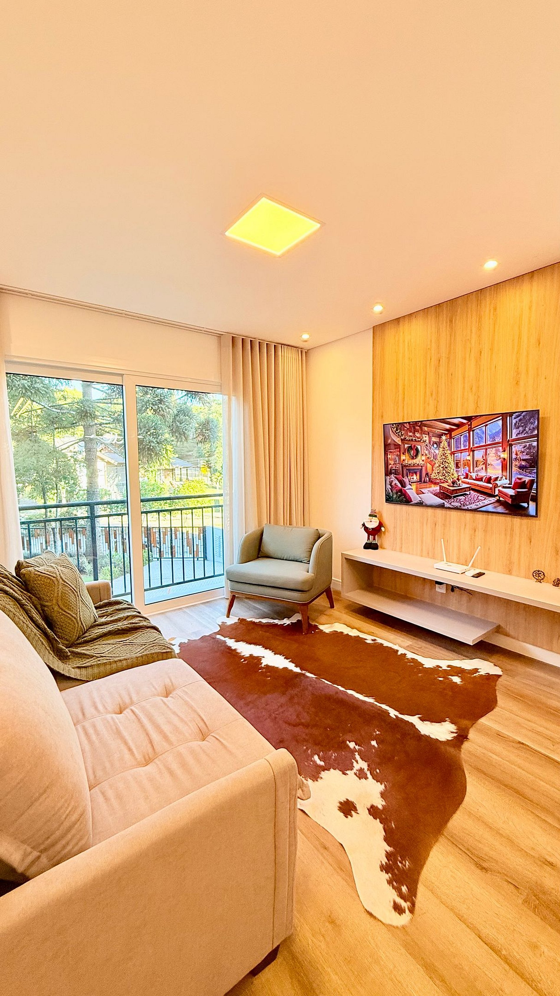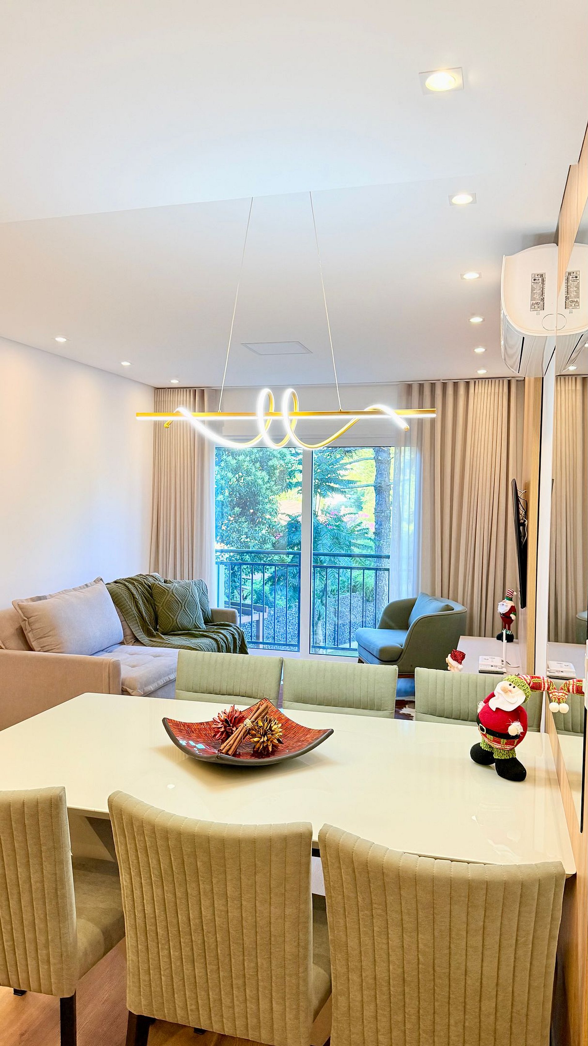 Apartamento novo, lindo e muito bem decorado, localizado a apenas 600 metros da Catedral de Pedra, em Canela. Possui duas suítes com camas queen e camas auxiliares, sala de estar com sofá-cama, lavabo e ar-condicionado em todos os ambientes. Vista encantadora para o jardim, ideal para famílias e grupos que buscam conforto, praticidade e uma estadia especial na Serra Gaúcha.