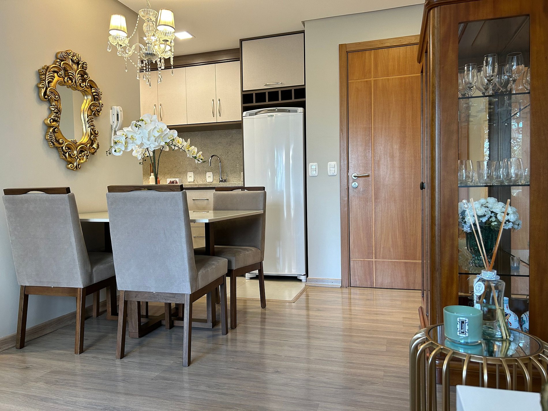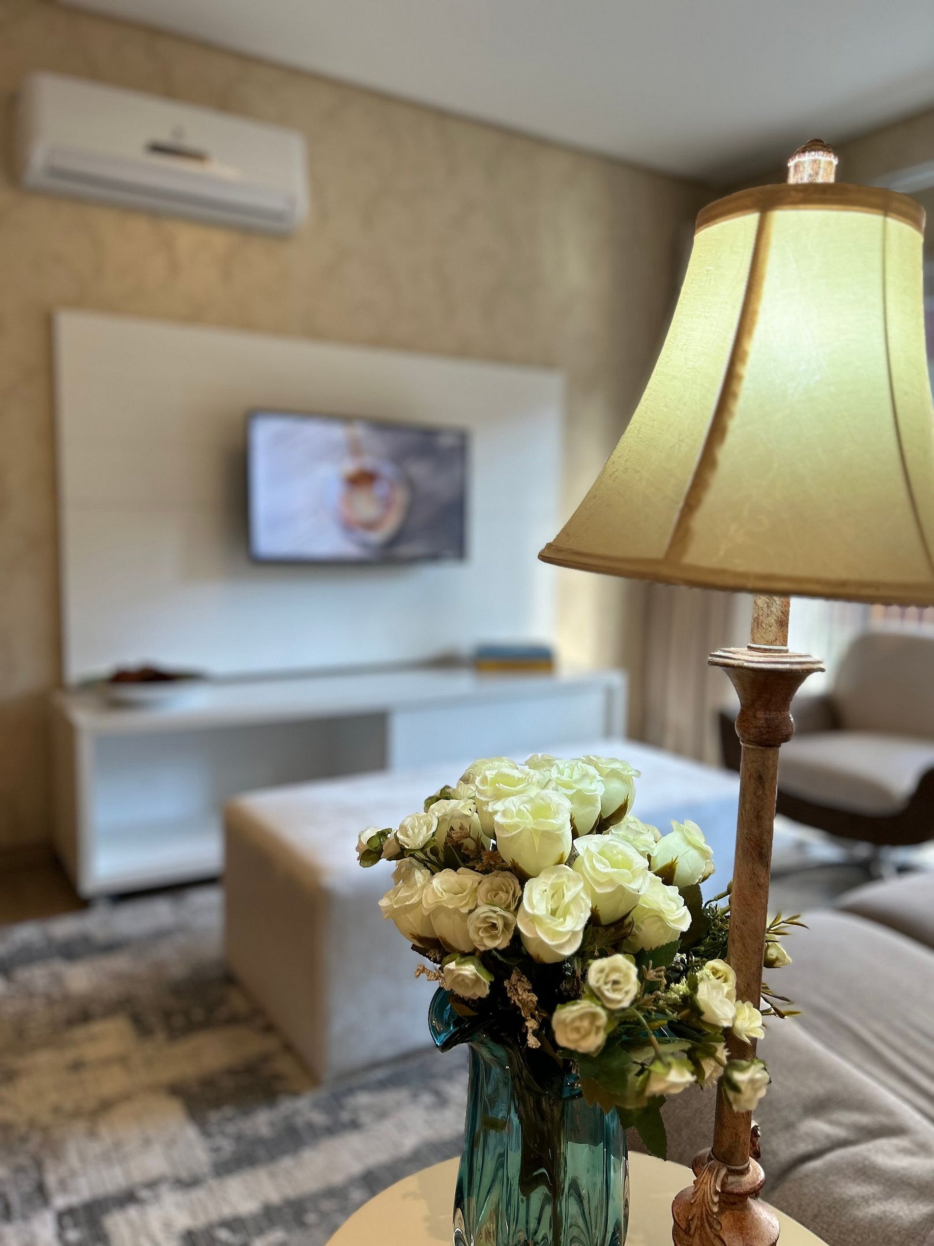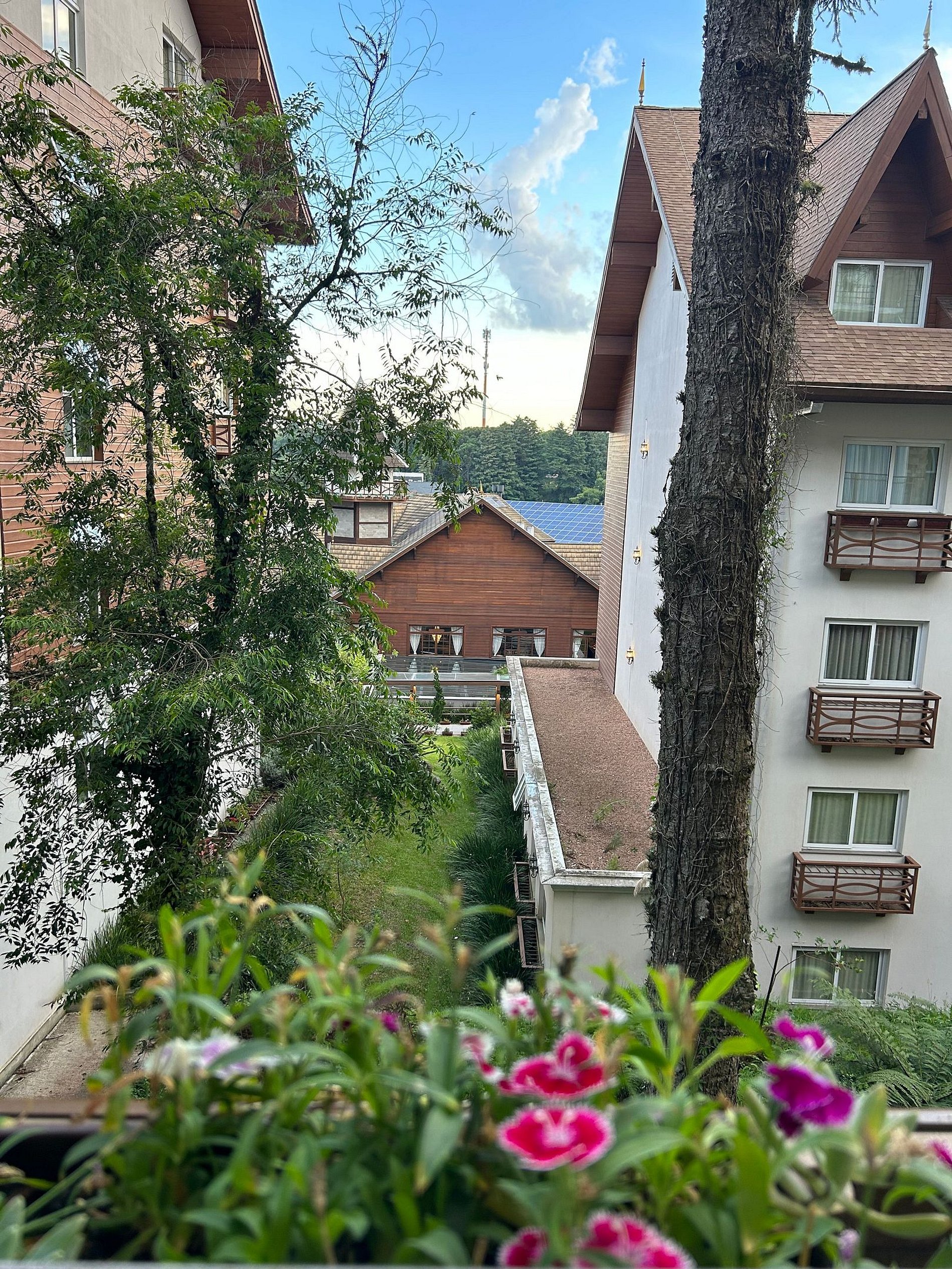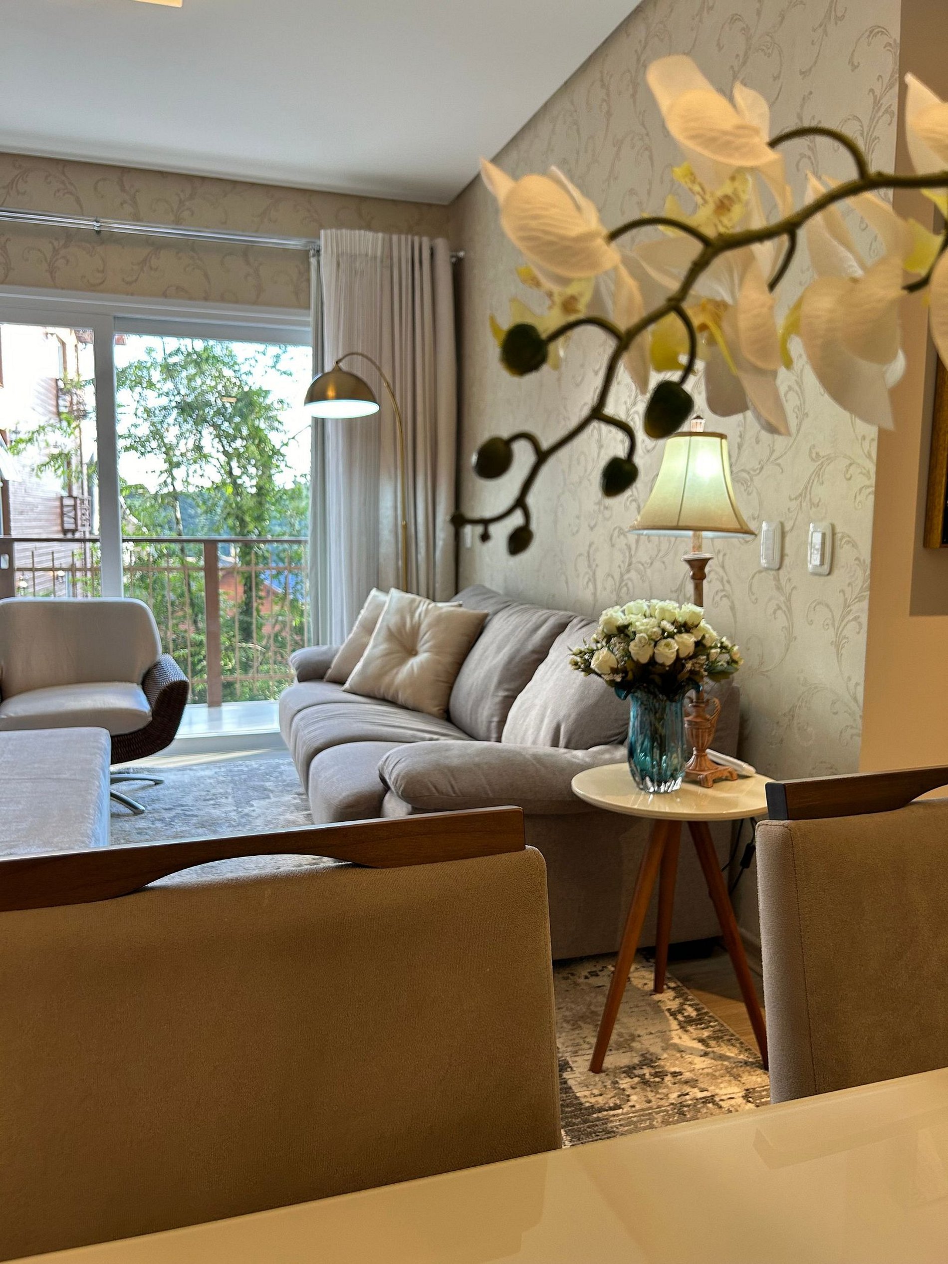 Pensando no seu conforto e descanso o apartamento possui uma suíte equipada com roupas de cama 300 fios, toalhas de banho tamanho gigante, toalhas de rosto e piso de excelente qualidade, além de ar-condicionado Split quente e frio, espelho e guarda roupas para acomodar todos os seus pertences. Você também vai encontrar um ferro de passar roupa e um secador de cabelos. A Sala de estar/jantar é equipada com TV Smart HD, ar-condicionado quente e frio, mesa de jantar com 4 cadeiras, um sofá-cama tamanho casal muito confortável com roupas de cama disponíveis. Na cozinha você encontra bule térmico com coador e filtros disponíveis. Você também terá a disposição uma chaleira elétrica, sanduicheira/grill, microondas, taças de vinho e espumante, geladeira, fogão, louças e talheres, panelas e churrasqueira. Sacada com vista para a Avenida das Hortênsias e vegetação local.