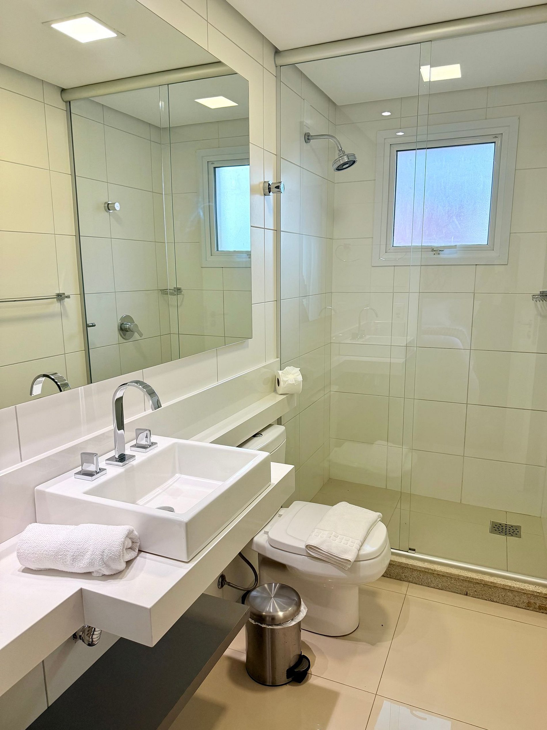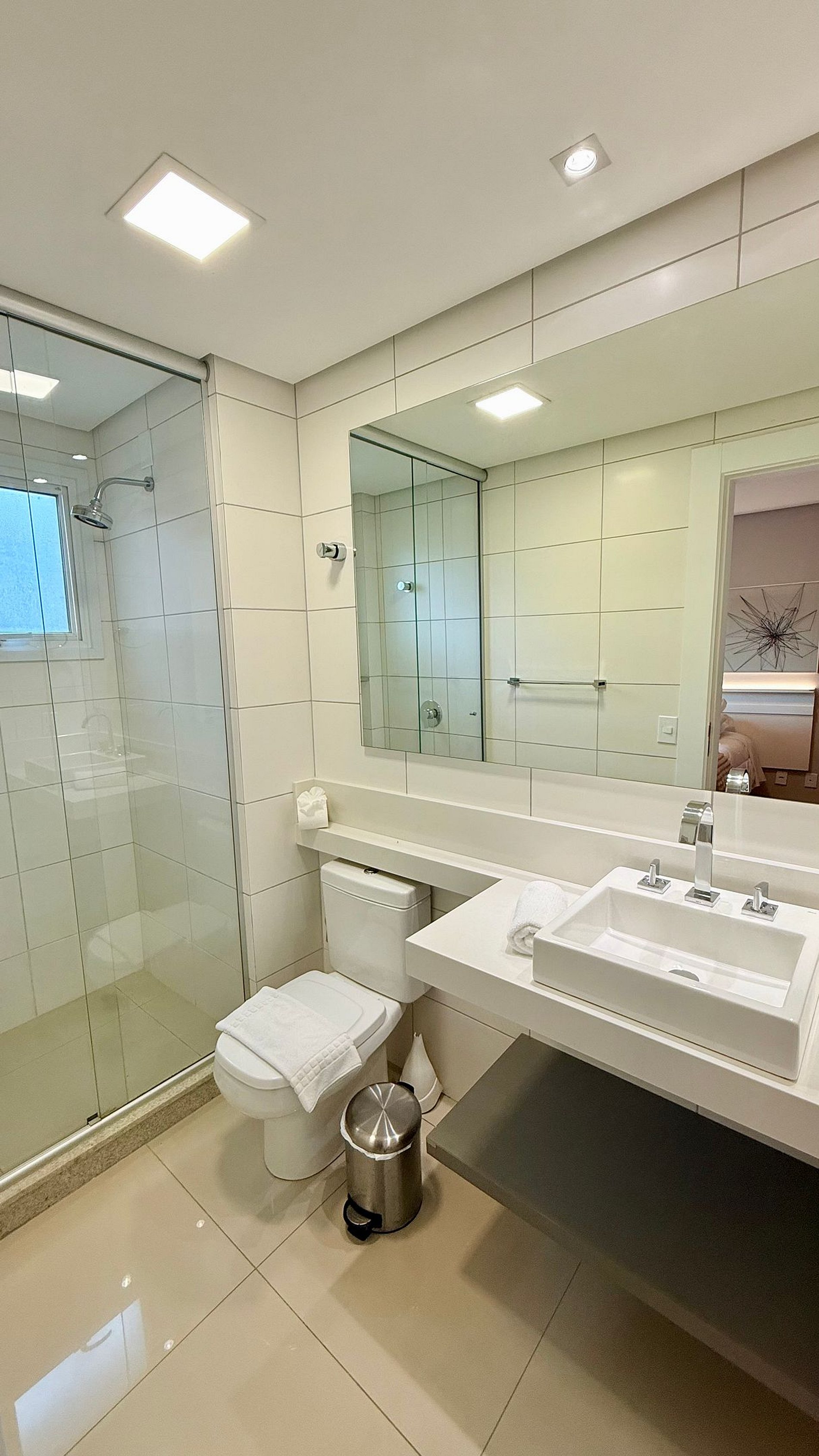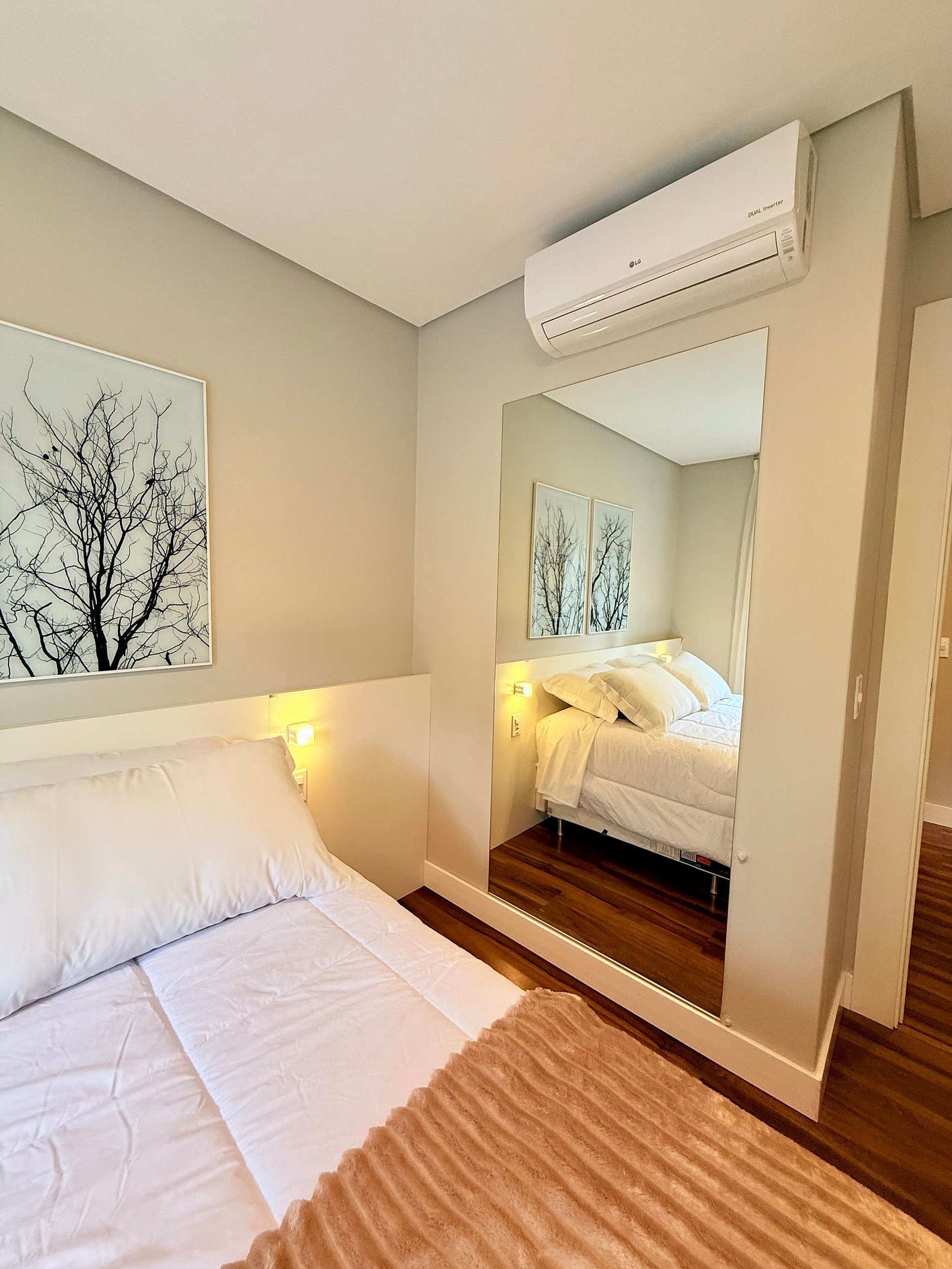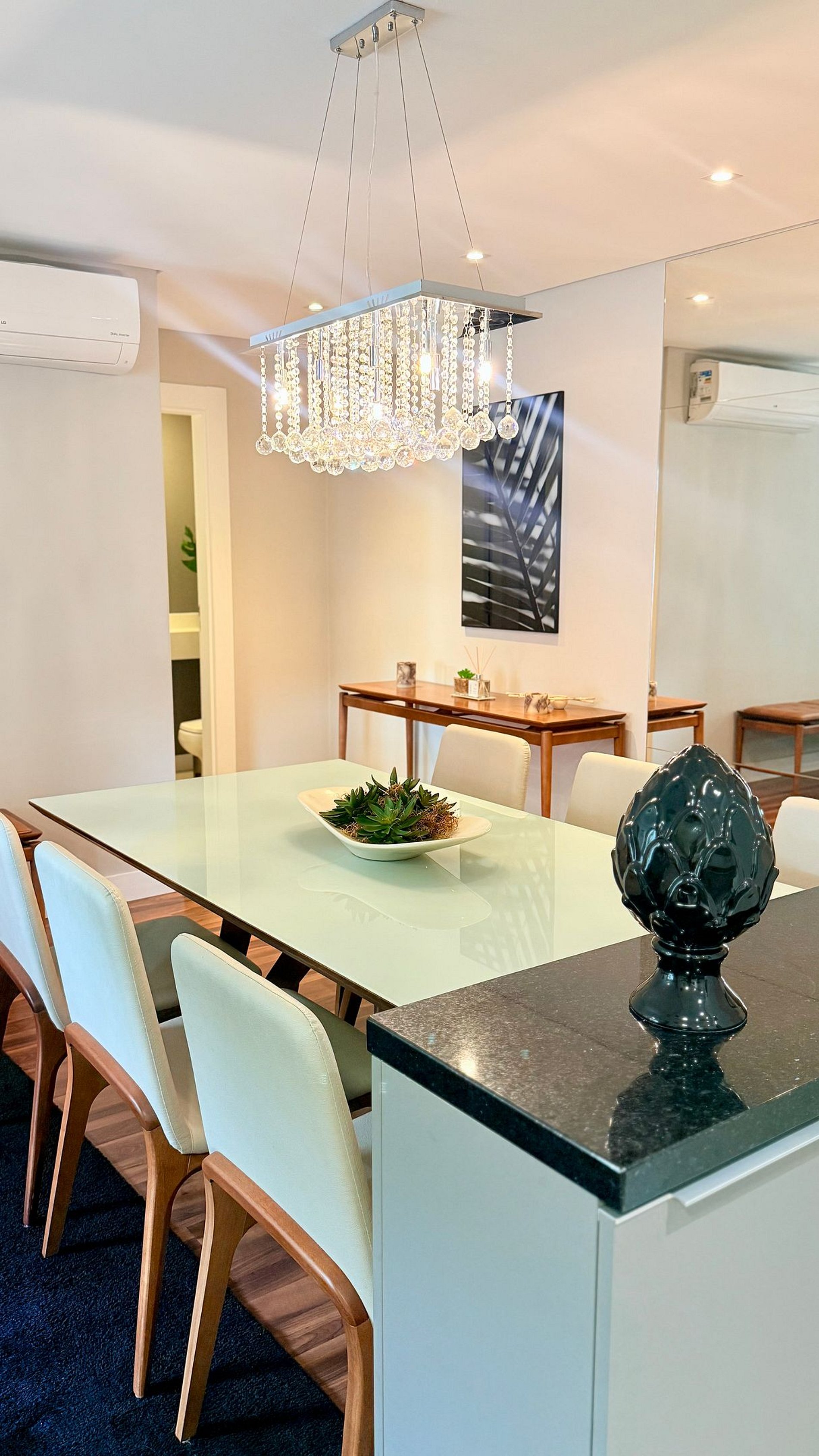 O ar-condicionado quente e frio em todos os ambientes garante bem-estar em qualquer estação. A cozinha é equipada e conta com churrasqueira interna, ideal para momentos especiais em grupo. A máquina lava e seca e o lavabo trazem ainda mais comodidade à sua estadia.