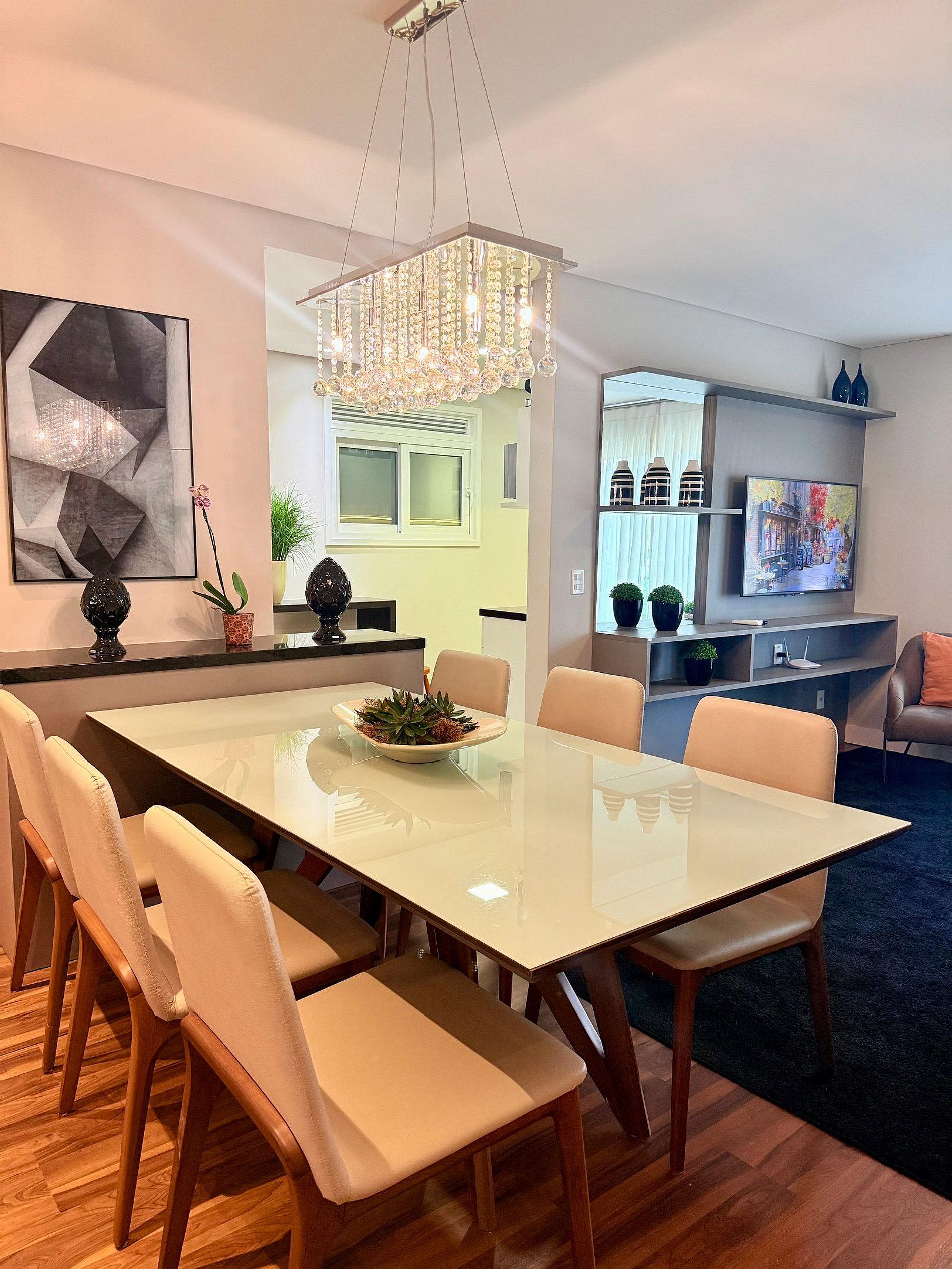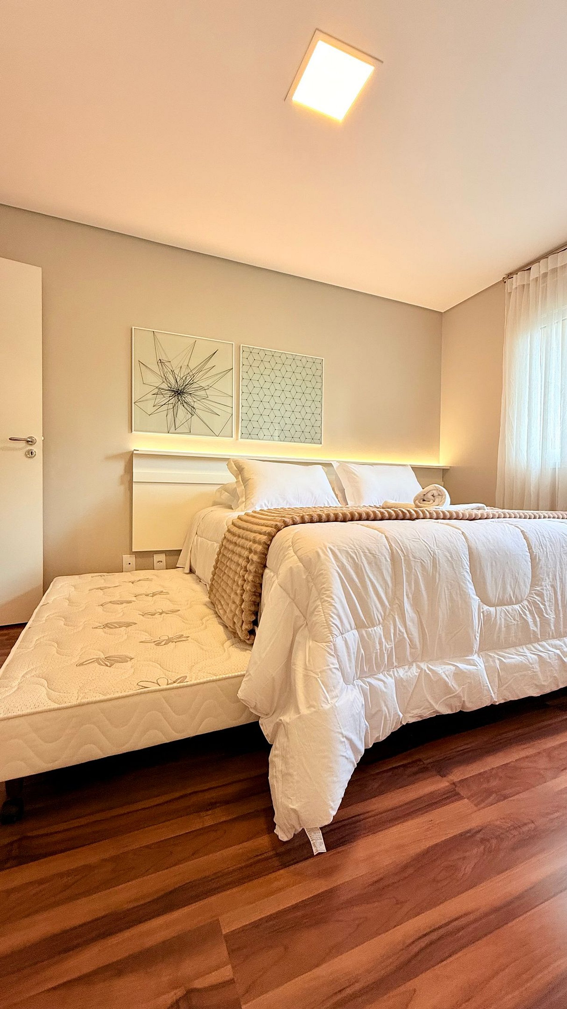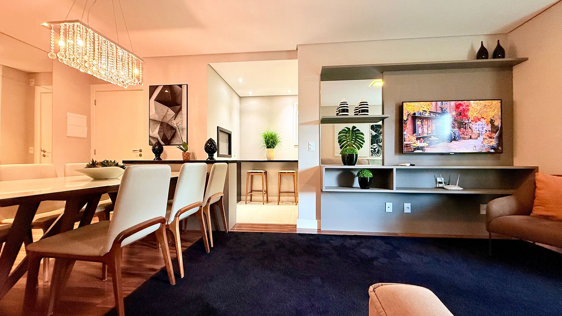 Os hóspedes têm acesso exclusivo a todo o apartamento durante a estadia. Isso inclui as duas suítes, sala de estar com sofá-cama, cozinha completa, área da churrasqueira, lavabo, máquina lava e seca e 2 vagas de garagem.