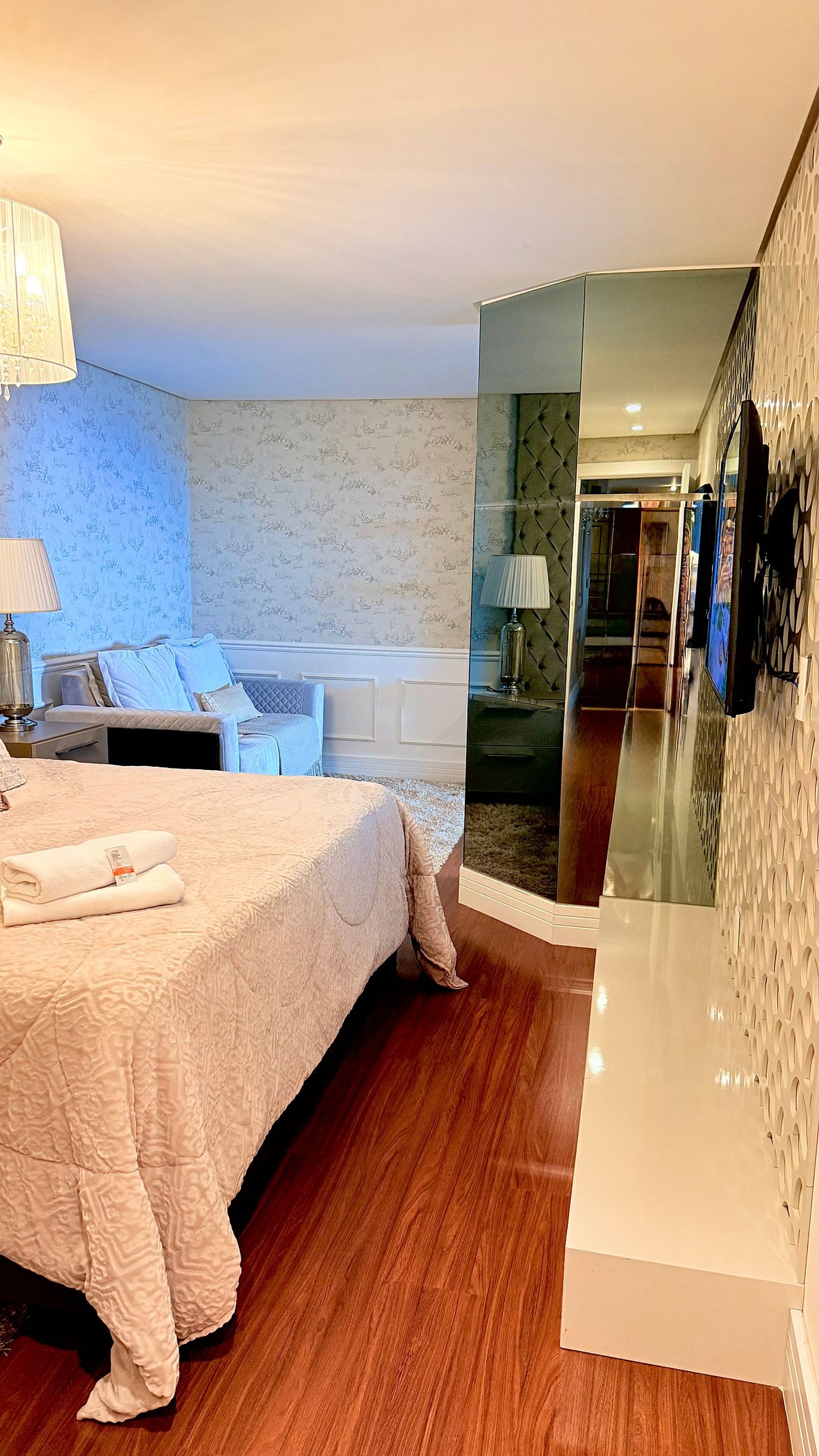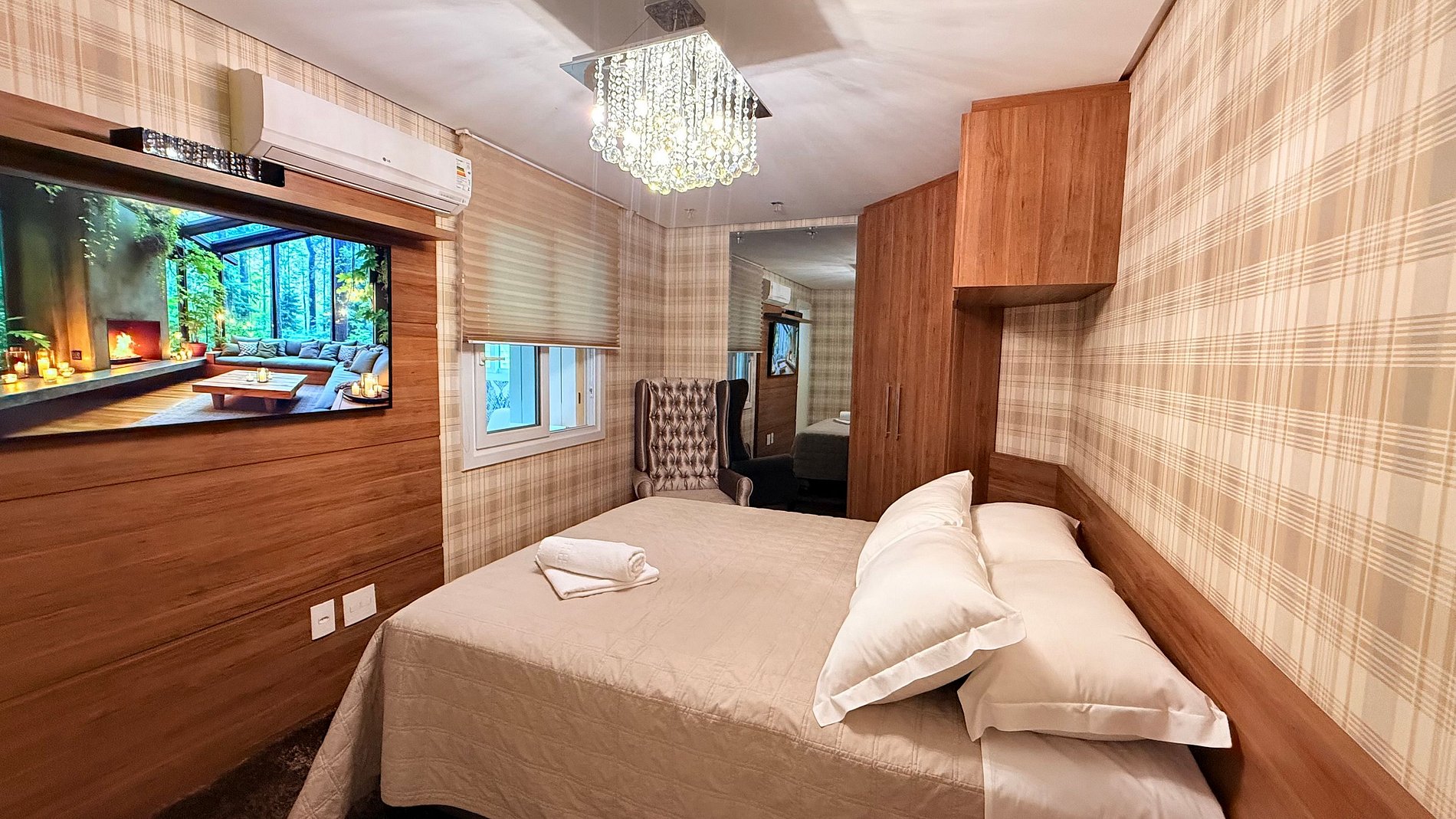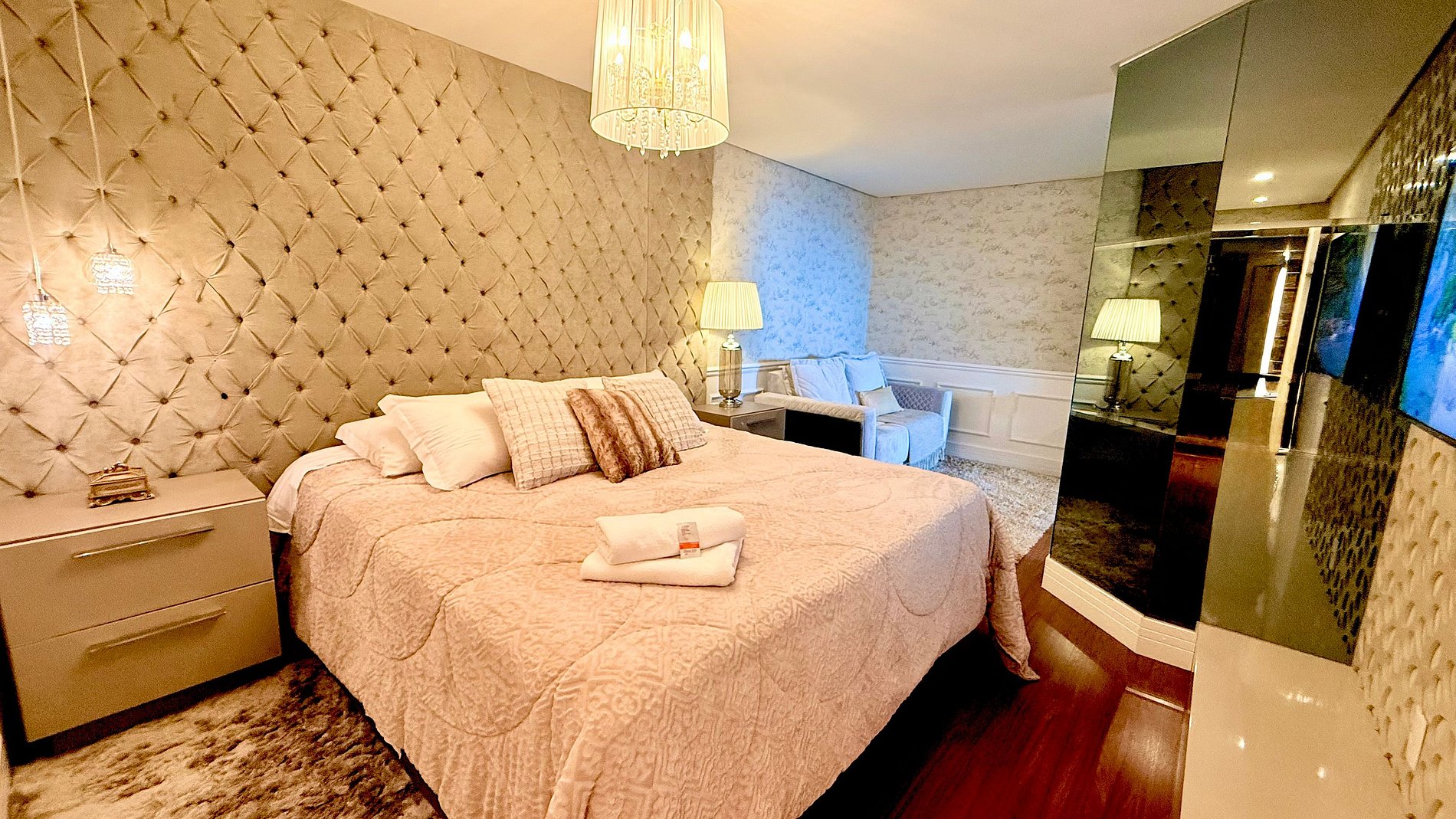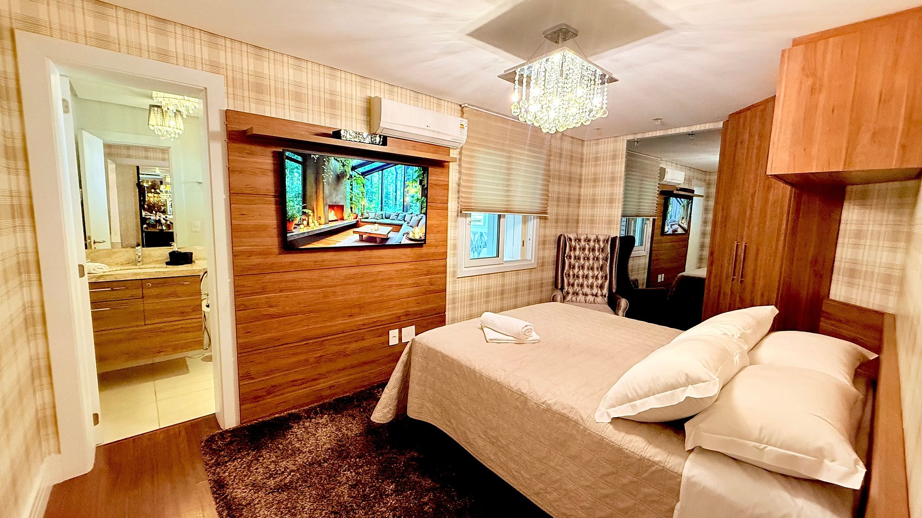 O apartamento foi pensado para oferecer uma experiência de hospedagem aconchegante, prática e elegante. Com três suítes amplas, sendo uma máster com closet e sala de leitura/descanso. Acomoda confortavelmente até 8 pessoas. A sala de estar é integrada à cozinha equipada, perfeita para momentos de convivência. O ar-condicionado quente e frio garante conforto o ano inteiro.