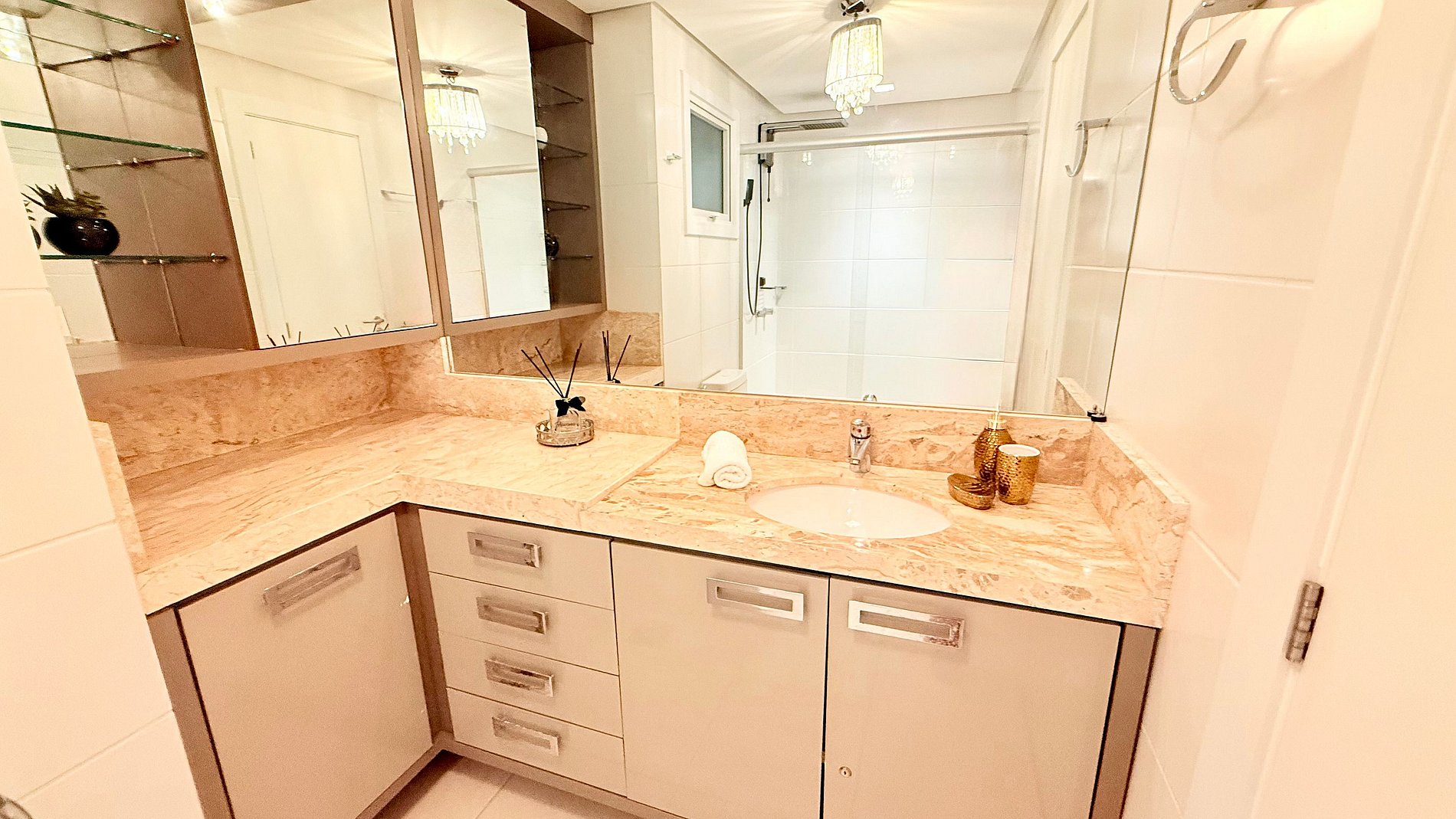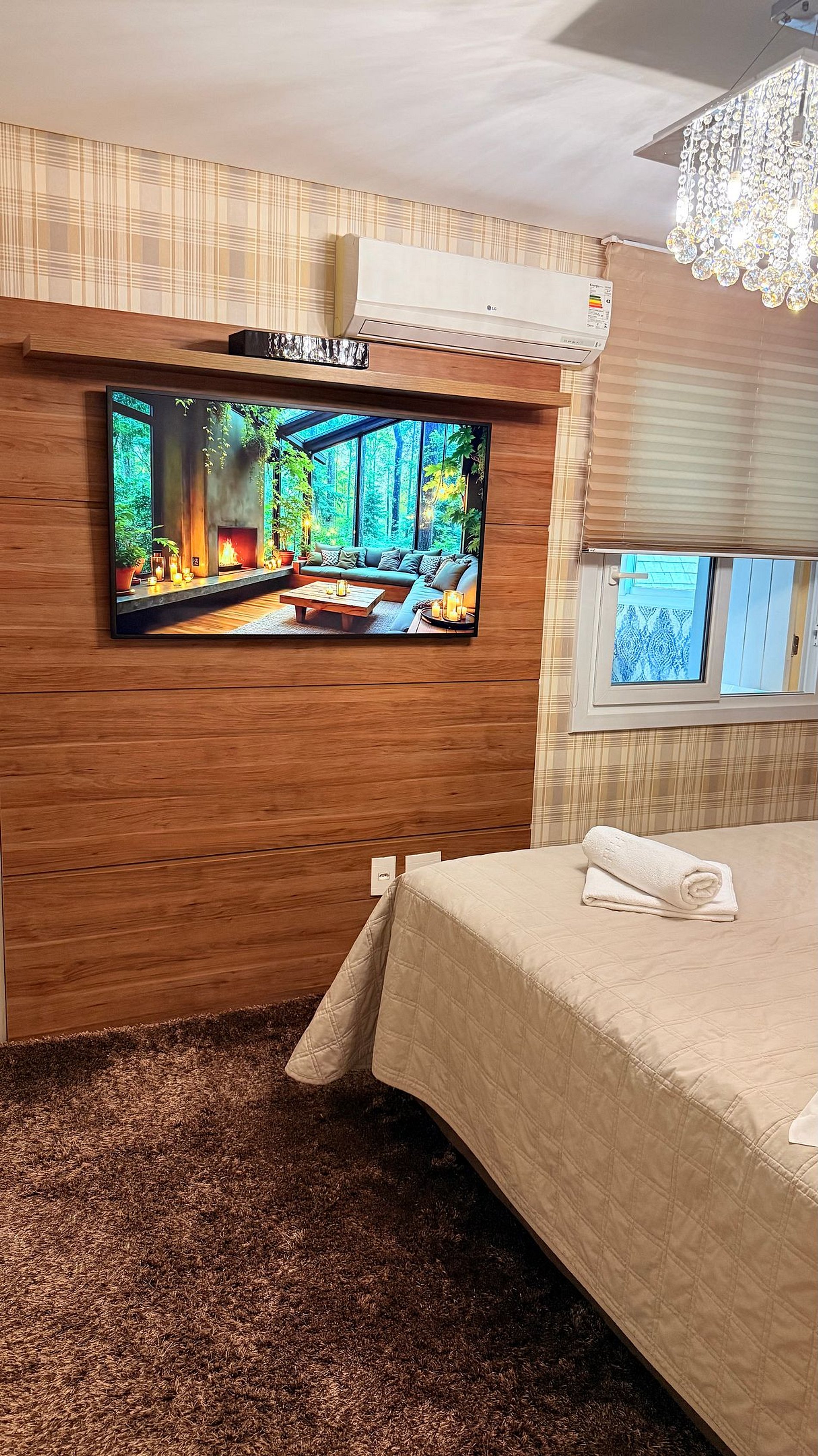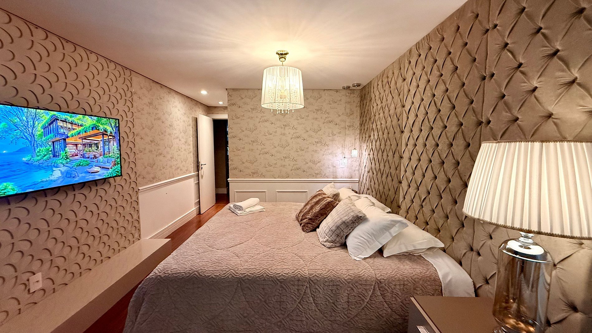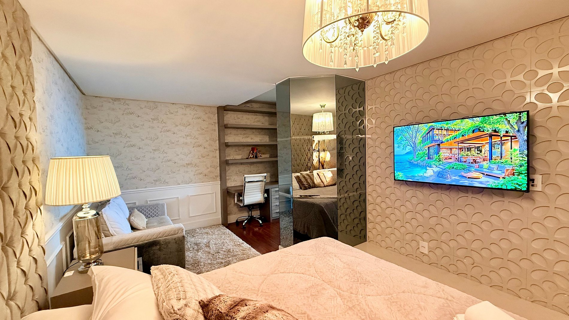 O apartamento foi pensado para oferecer uma experiência de hospedagem aconchegante, prática e elegante. Com três suítes amplas, sendo uma máster com closet e sala de leitura/descanso. Acomoda confortavelmente até 8 pessoas. A sala de estar é integrada à cozinha equipada, perfeita para momentos de convivência. O ar-condicionado quente e frio garante conforto o ano inteiro.