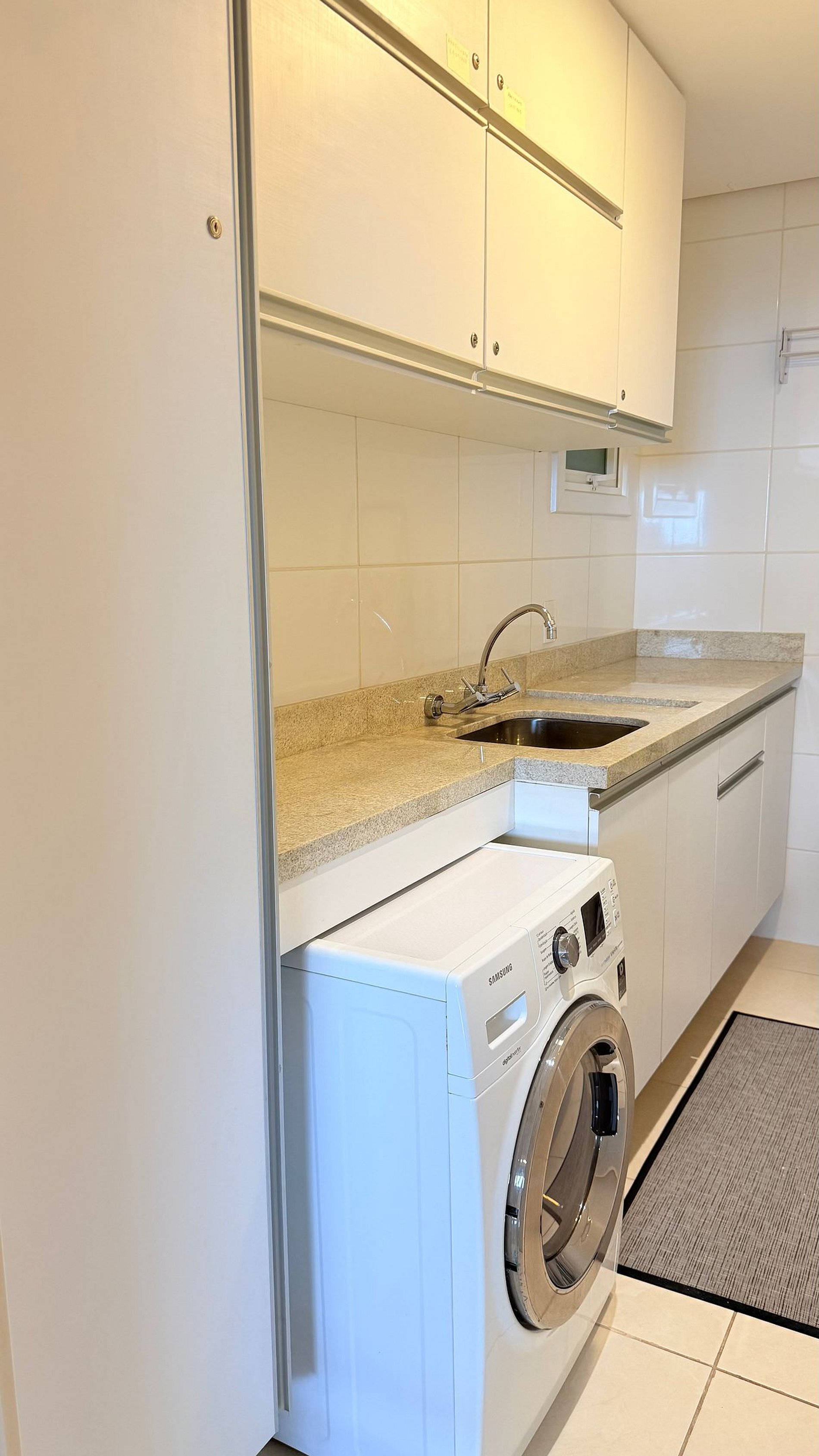 Os hóspedes têm acesso exclusivo a todo o apartamento, incluindo as três suítes, cozinha completa, lavanderia com máquina lava e seca e as três vagas de garagem (uma adaptada para pessoas com deficiência).