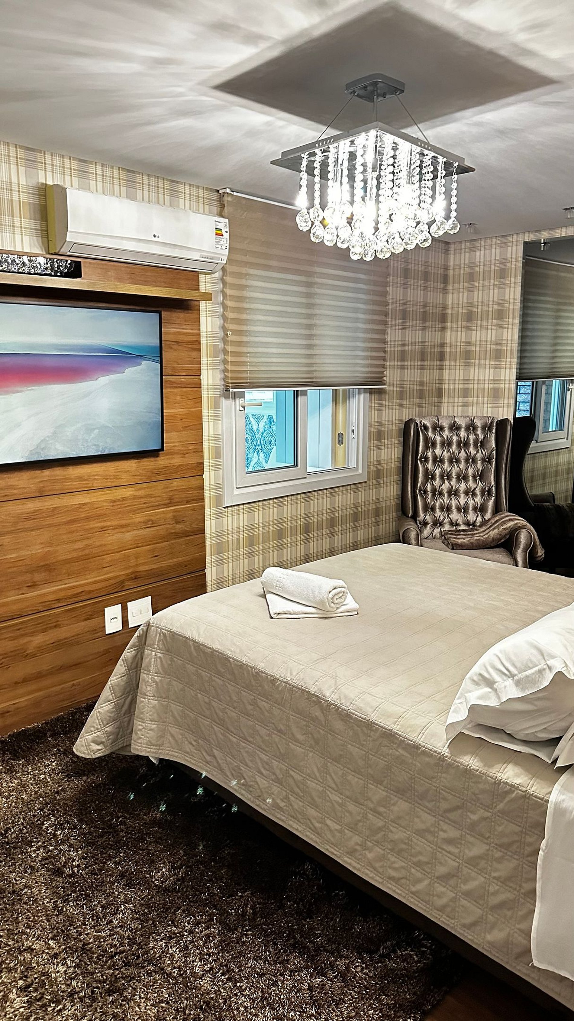 O apartamento foi pensado para oferecer uma experiência de hospedagem aconchegante, prática e elegante. Com três suítes amplas, sendo uma máster com closet e sala de leitura/descanso. Acomoda confortavelmente até 8 pessoas. A sala de estar é integrada à cozinha equipada, perfeita para momentos de convivência. O ar-condicionado quente e frio garante conforto o ano inteiro.