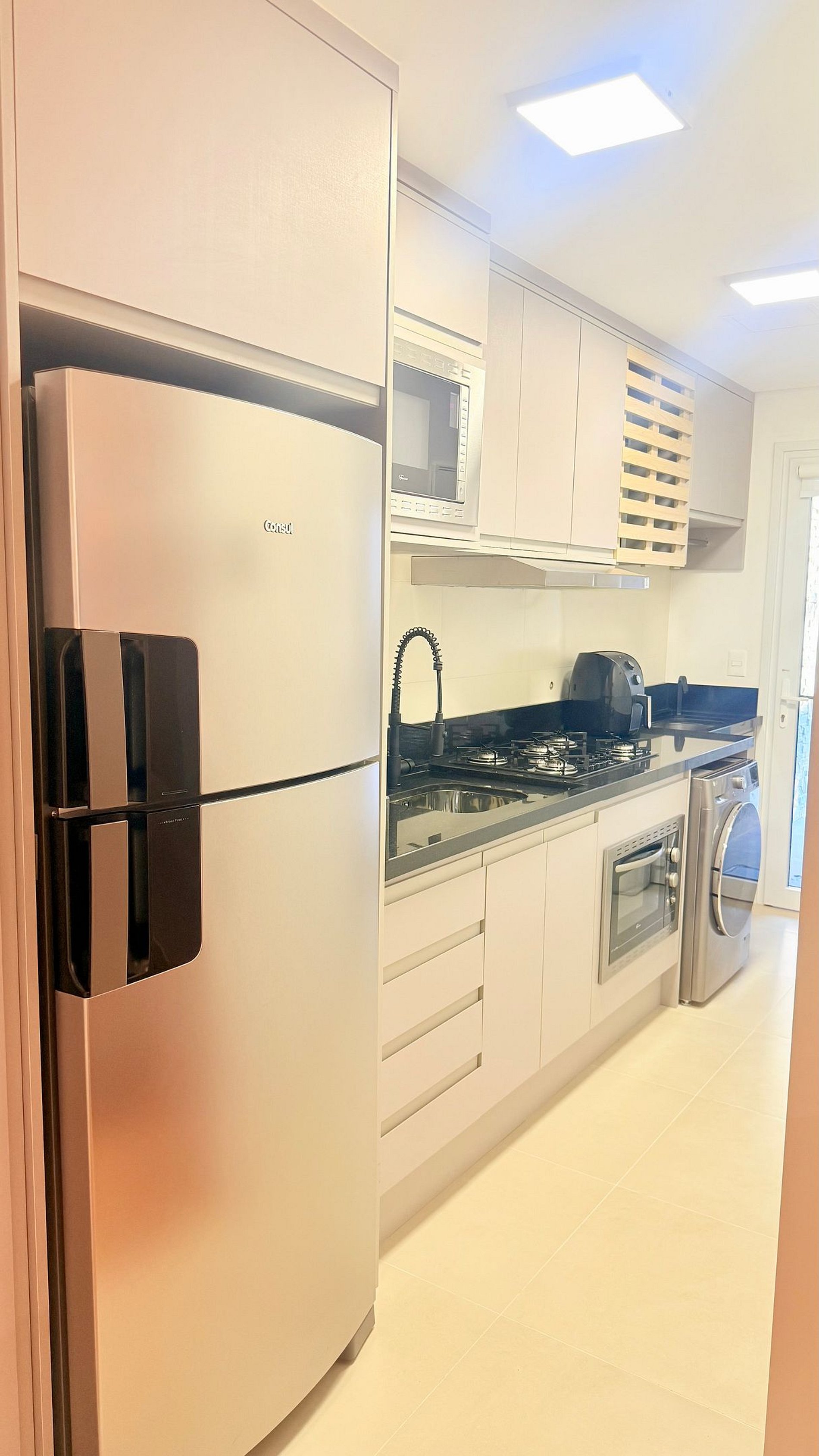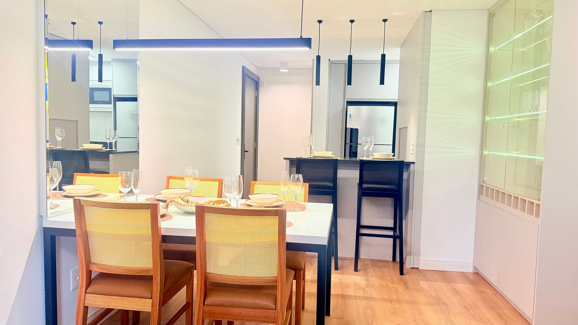 O ar-condicionado quente e frio em todos os ambientes garante bem-estar em qualquer estação. A cozinha é equipada e conta com churrasqueira interna, ideal para momentos especiais em grupo. A máquina lava e seca e o lavabo trazem ainda mais comodidade à sua estadia.