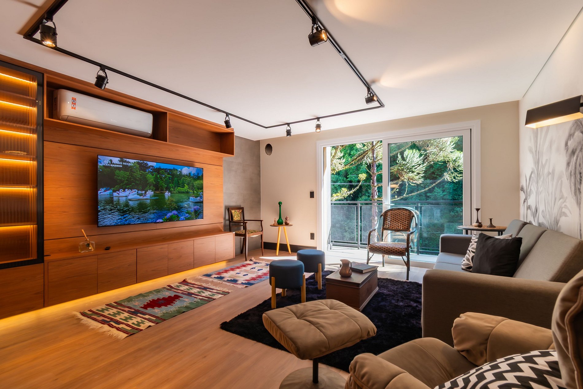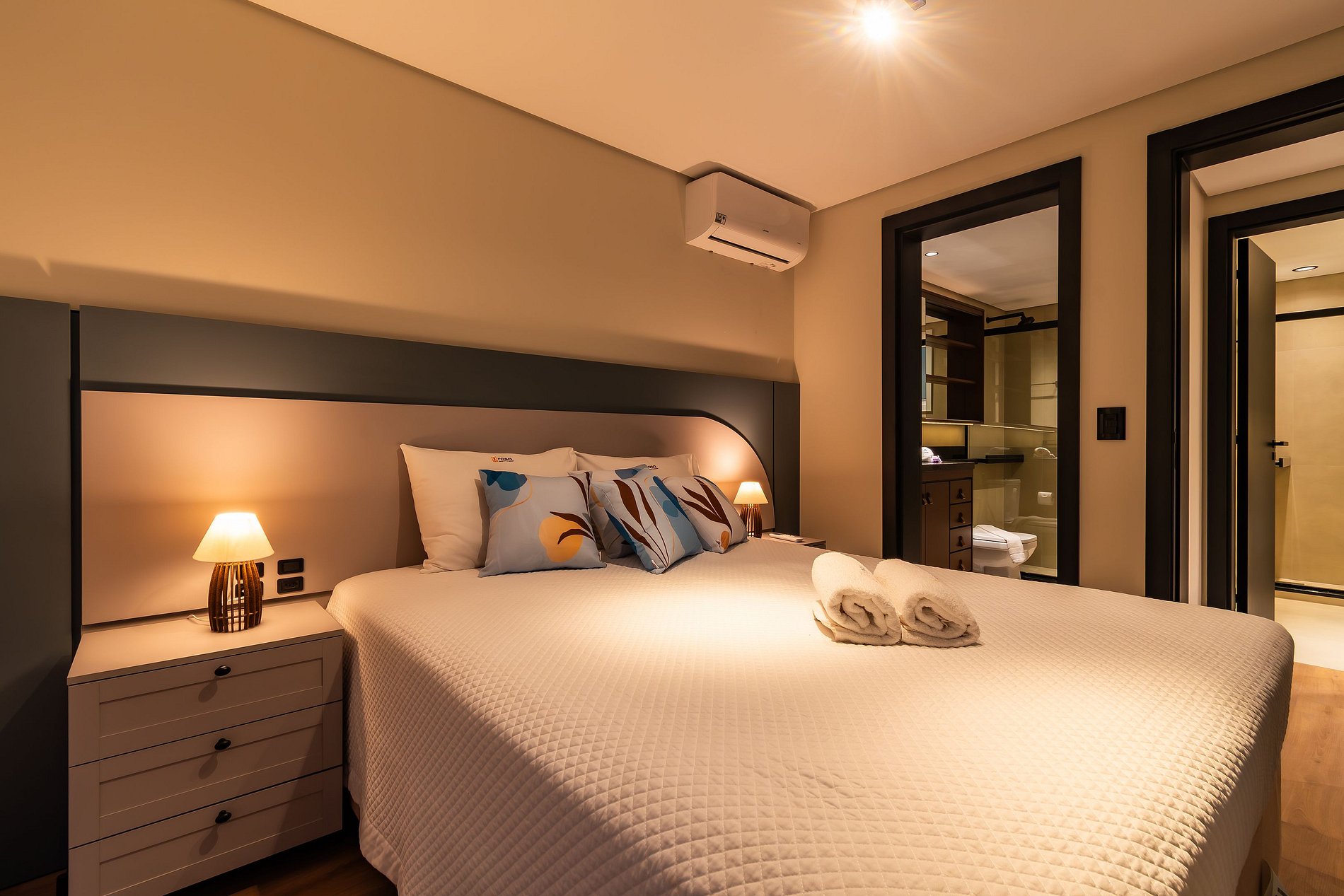 Esse apê é um refúgio perfeito em meio à natureza de Gramado. A ampla varanda com vista para o verde convida a momentos de paz e contemplação. O sofá-cama tornam a sala ainda mais acolhedora. A suíte e quarto são confortáveis e climatizados.. Tudo foi pensado para unir conforto, praticidade e beleza.