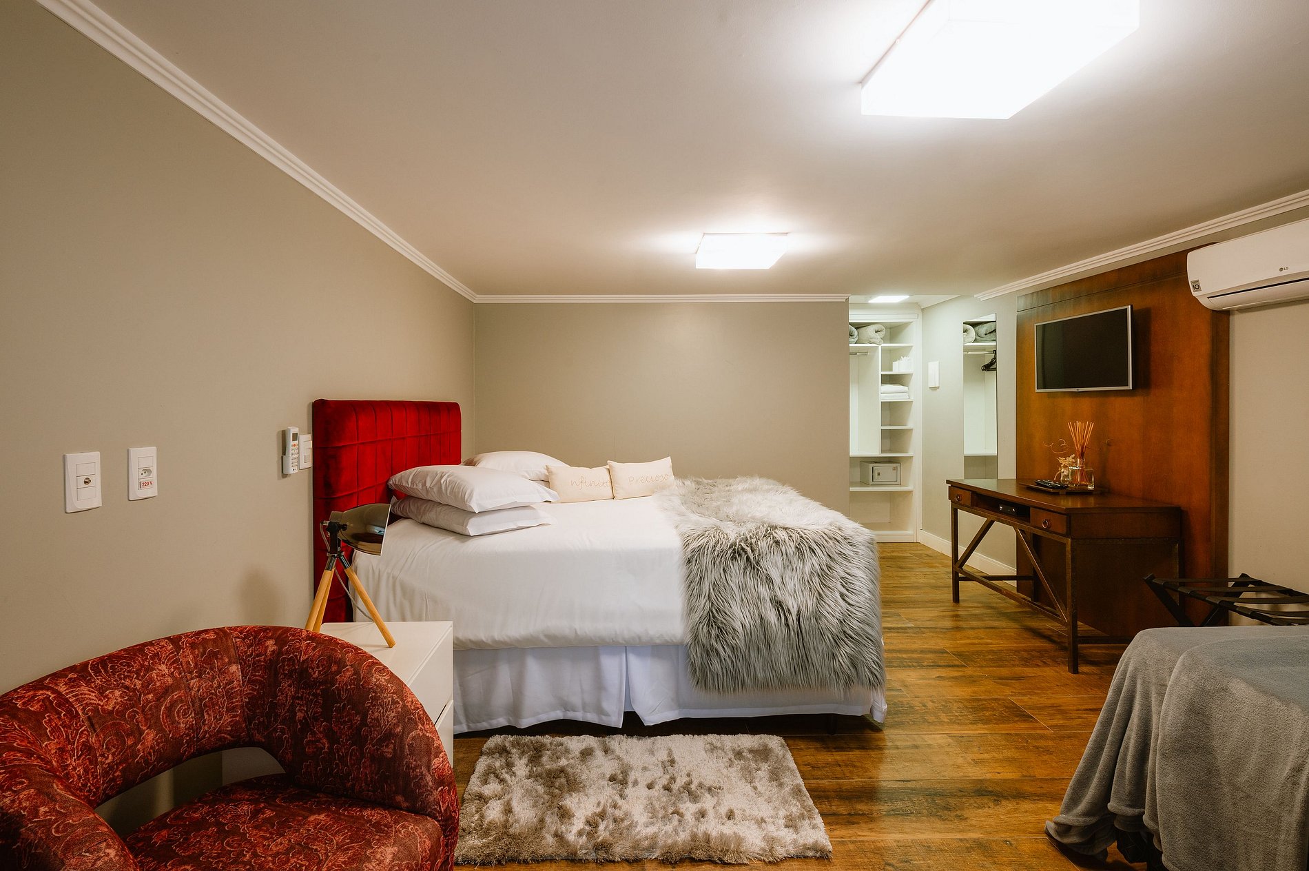 Todas as suítes são equipadas com toalhas, chaleira, cafeteira, ferro de passar, secador de cabelo, além de mesa e cadeira para maior comodidade.