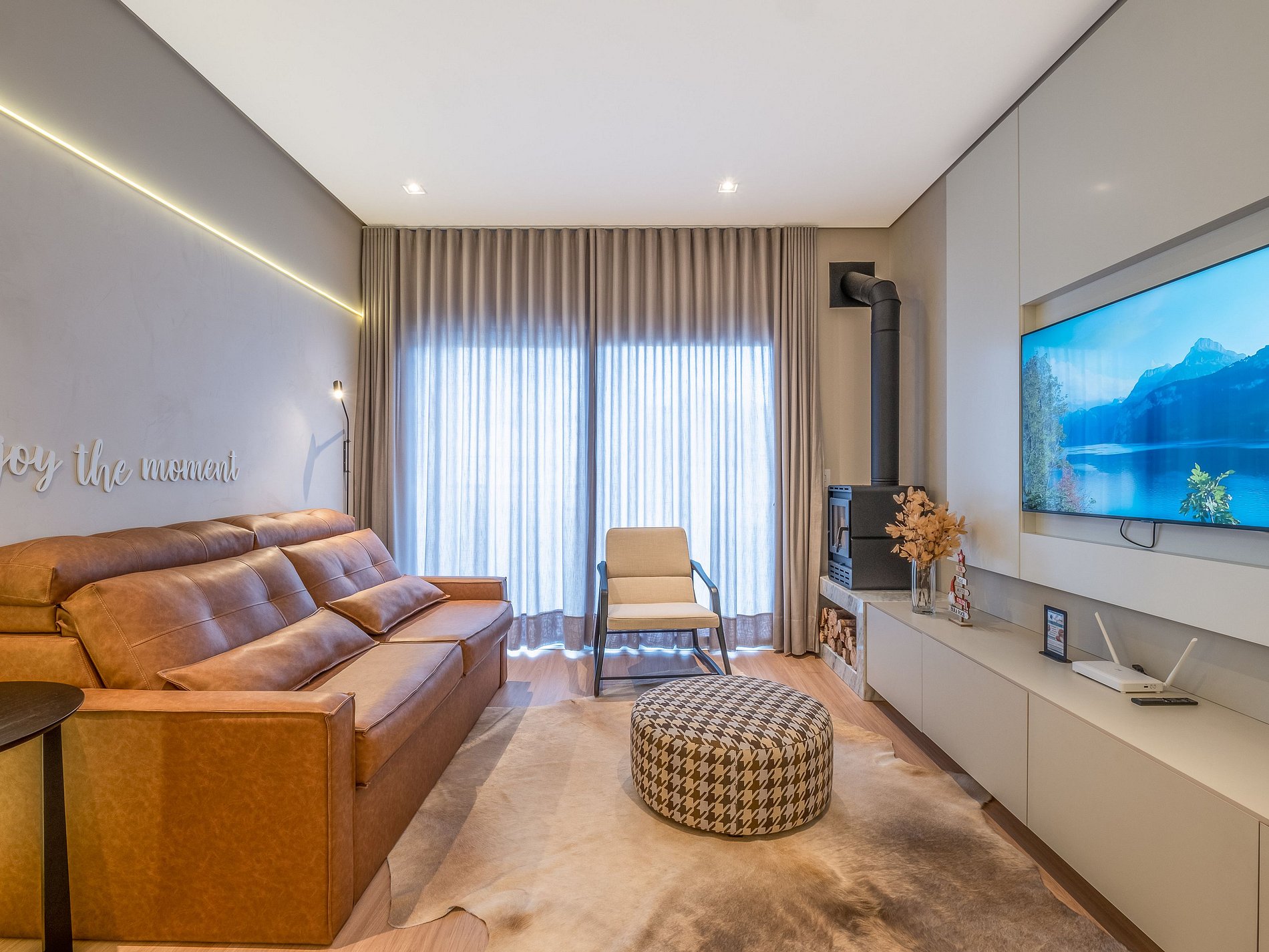 Este apartamento foi pensado para oferecer uma estadia confortável, elegante e acolhedora, com um toque especial: uma lareira charmosa que transforma qualquer momento em uma experiência ainda mais inesquecível.