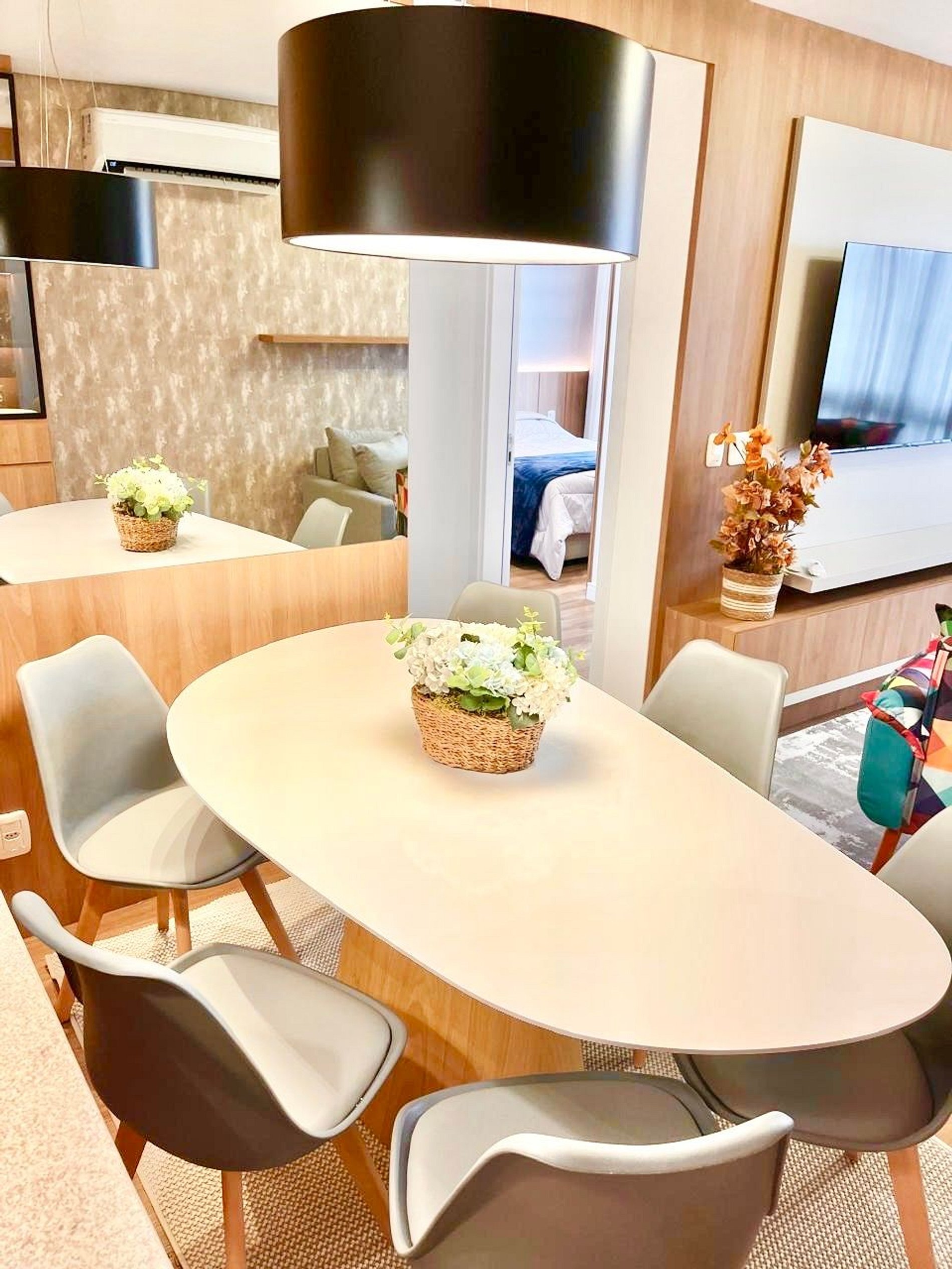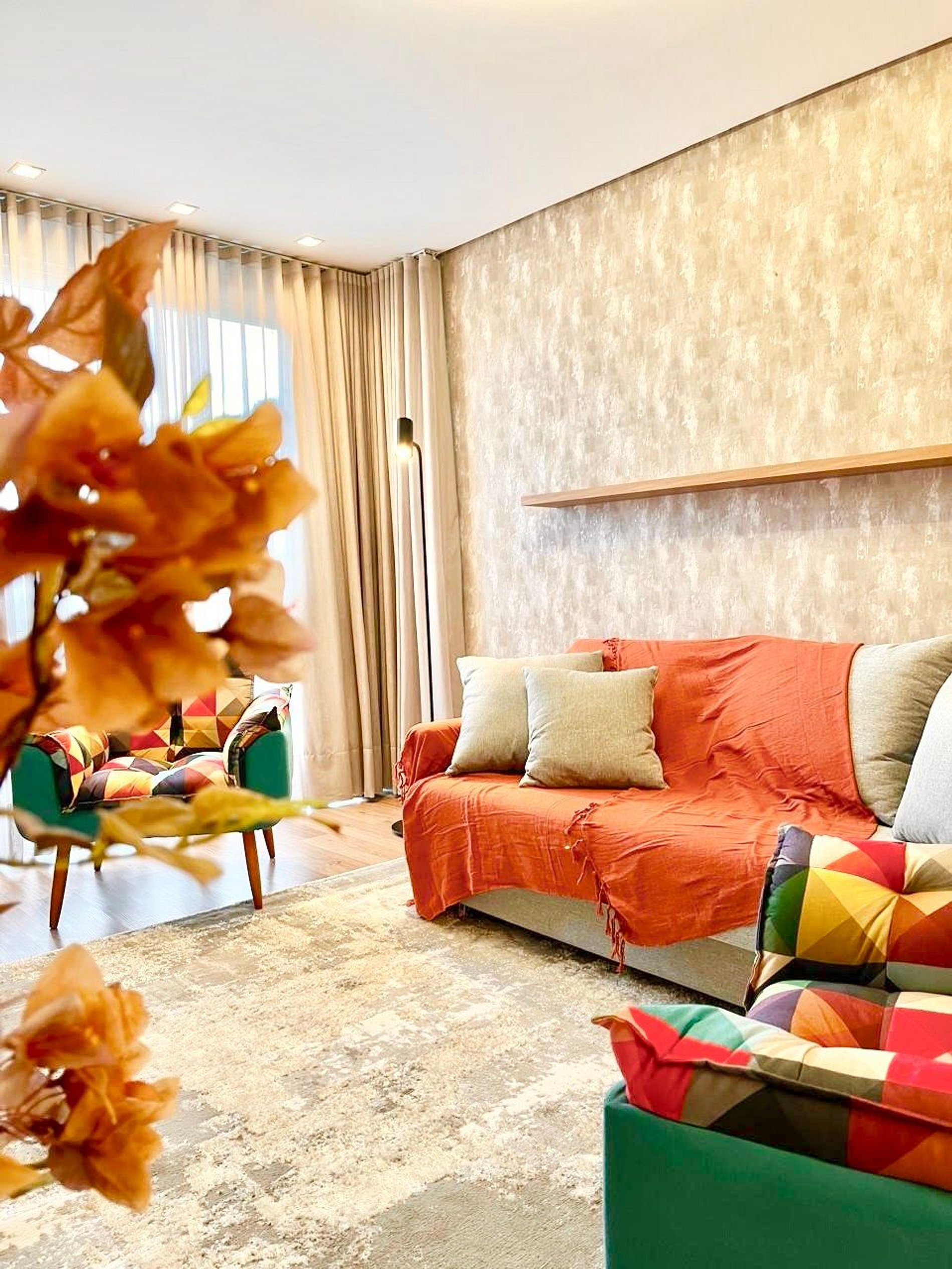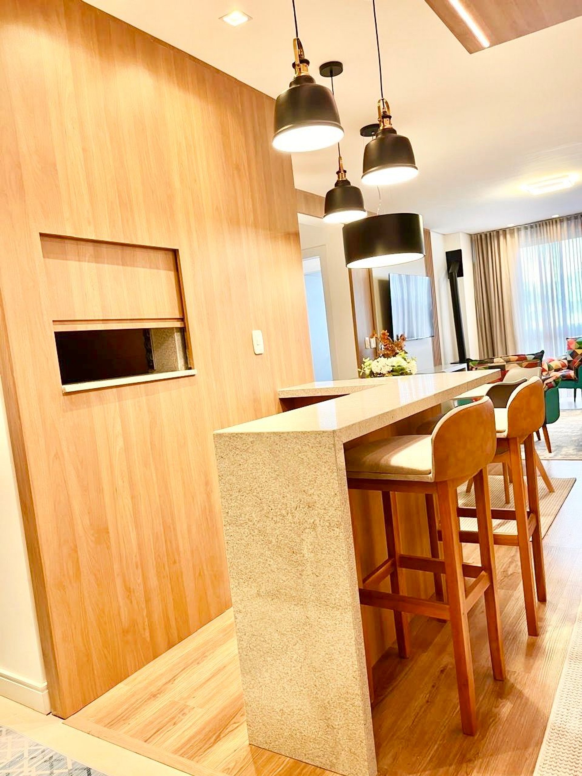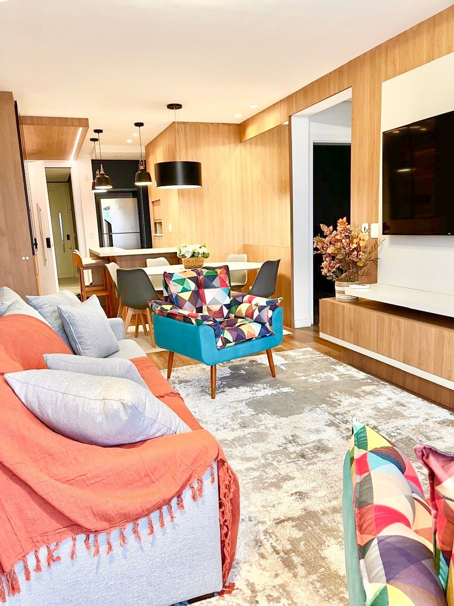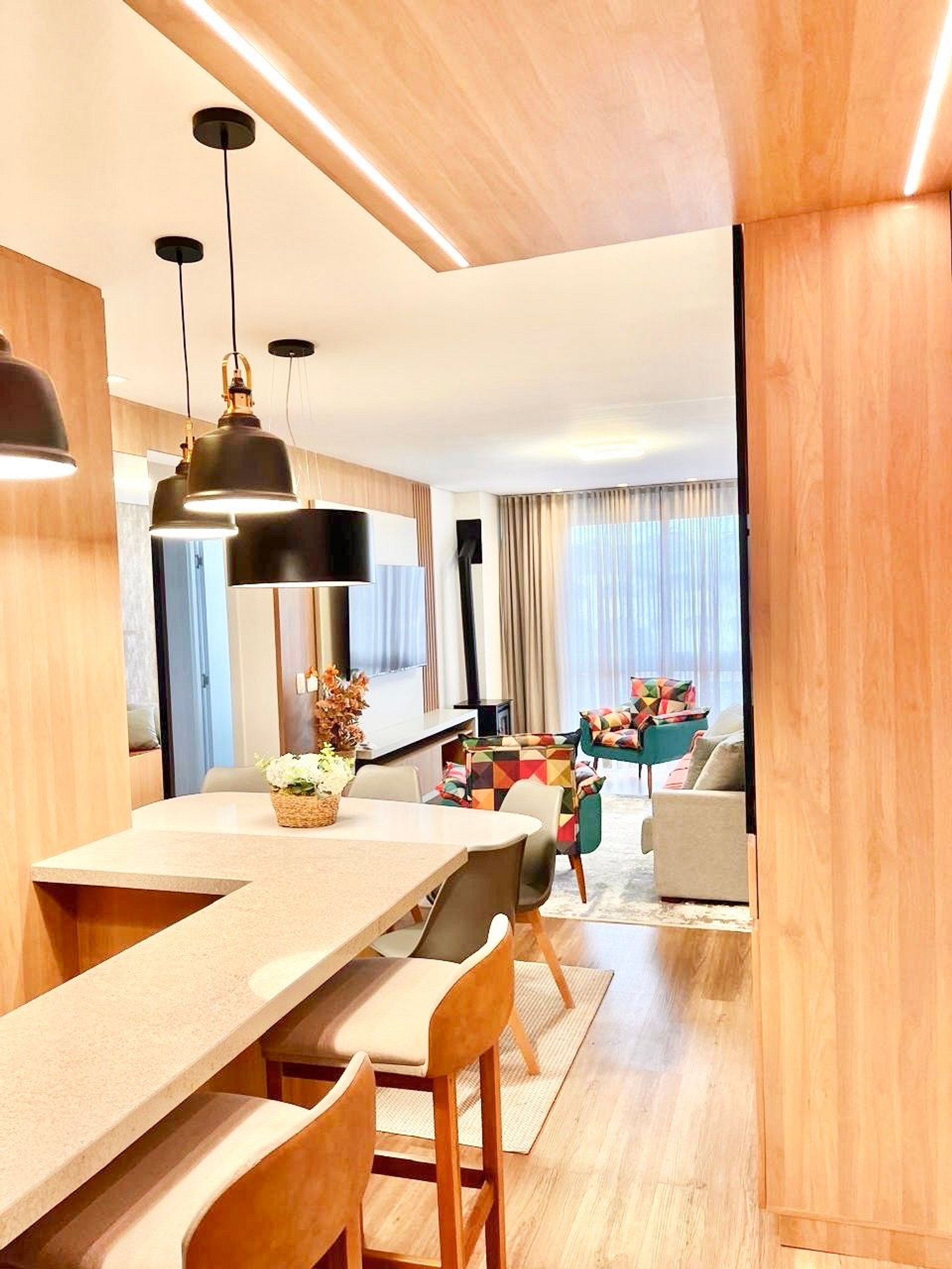 A apenas 800m da charmosa Catedral de Pedra, este apê novo para até 8 pessoas une conforto e sofisticação no coração de Canela. São 2 suítes com cama queen mais uma cama auxiliar em ambos os quartos, sofá cama de casal na sala, ar-condicionado quente/frio nas suítes e na sala de estar, lareira a lenha, lavabo, cozinha completa, máquina Lava e Seca, churrasqueira, 2 vagas de garagem e decoração impecável. Ao lado de uma padaria deliciosa e com lavanderia no prédio.